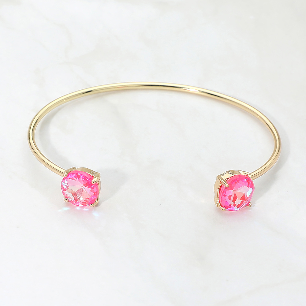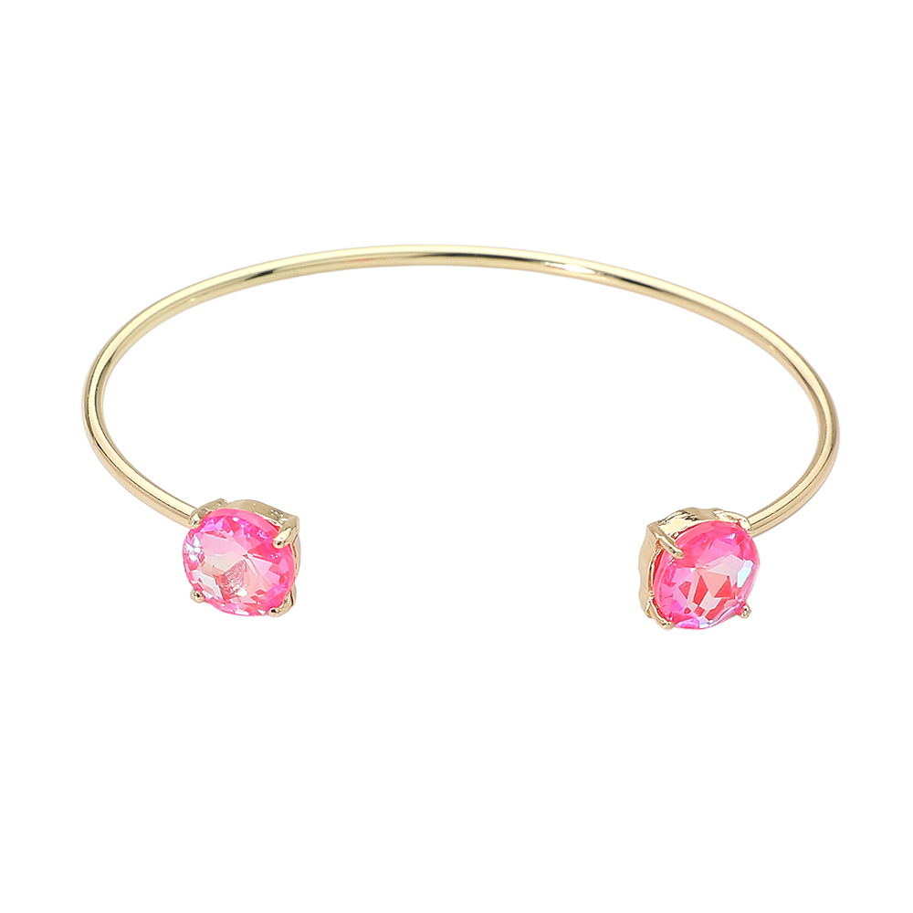• This double stone open cuff bracelet features a sleek minimalist silhouette accented with two faceted stones for subtle sparkle. Designed for easy slip-on wear, it offers a modern, refined look that works for everyday styling or special occasions, making it a versatile choice for boutique jewelry collections and gift-ready displays.