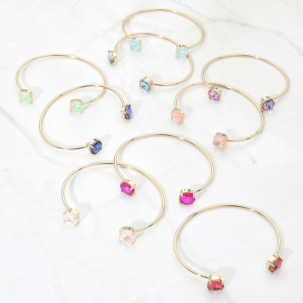 • This double stone open cuff bracelet features a sleek minimalist silhouette accented with two faceted stones for subtle sparkle. Designed for easy slip-on wear, it offers a modern, refined look that works for everyday styling or special occasions, making it a versatile choice for boutique jewelry collections and gift-ready displays.