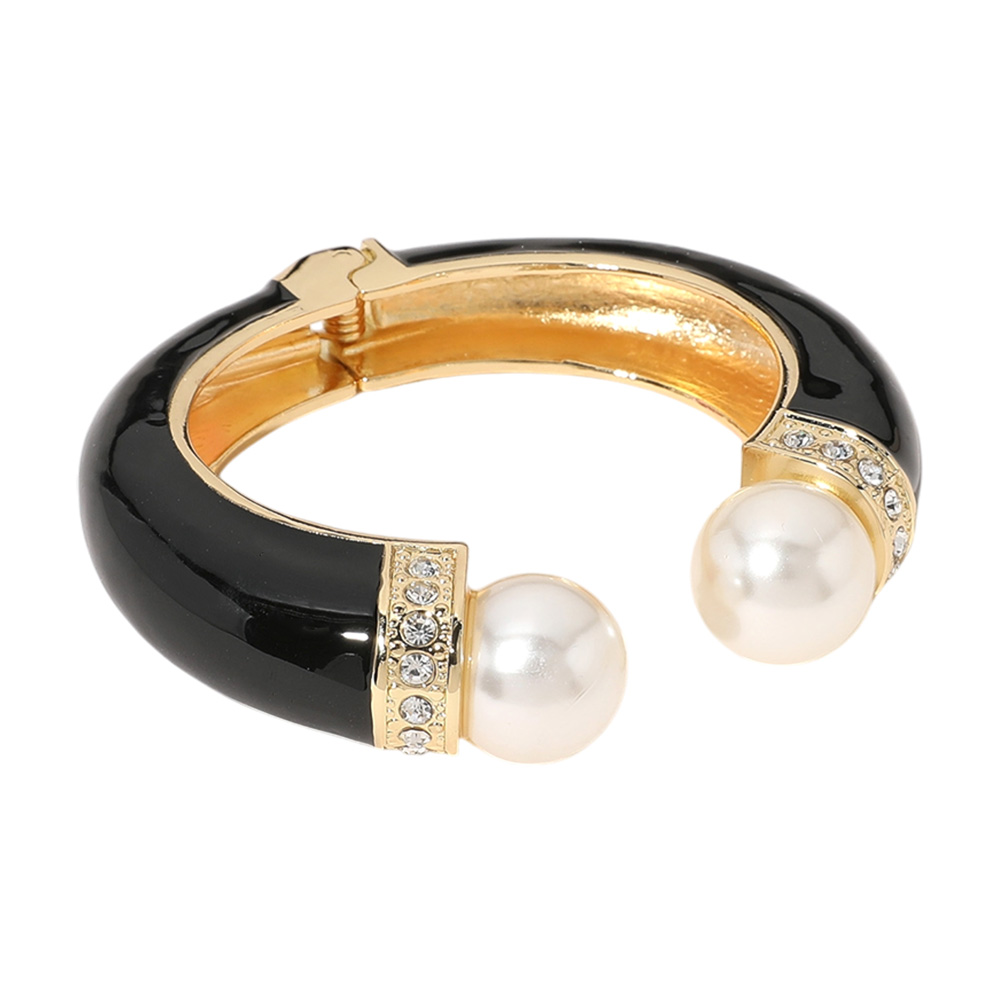 Gold Plated Pearl Tip Enamel Hinged Cuff Bracelet Gold Plated Pearl Tip Enamel Hinged Cuff Bracelet Gold Plated Pearl Tip Enamel Hinged Cuff Bracelet