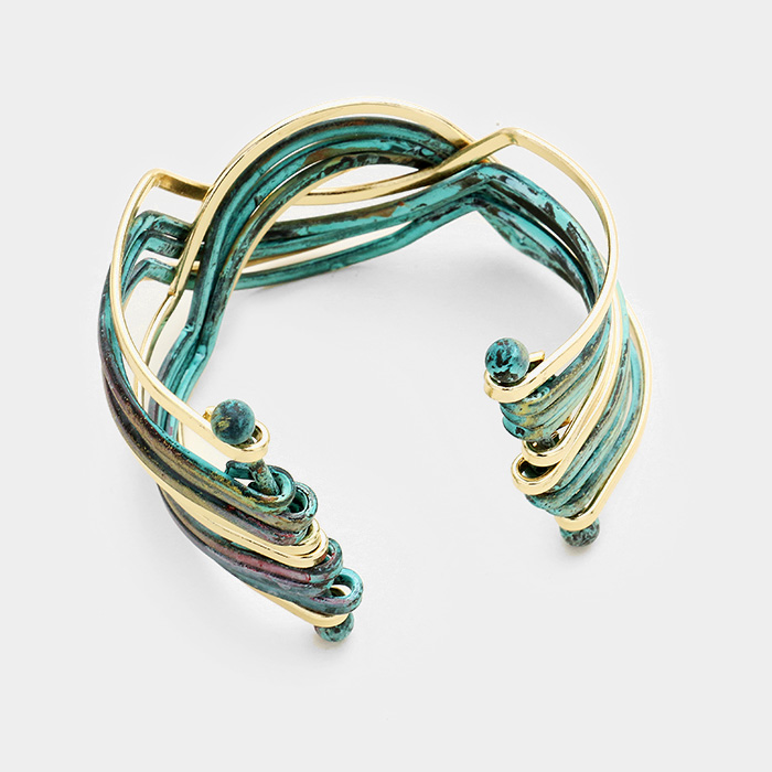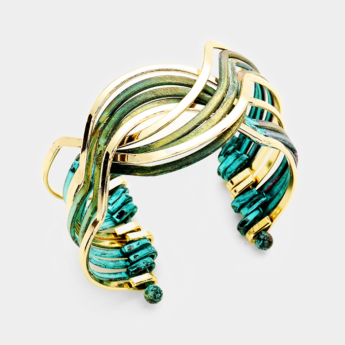 Multi Strand Twisted Patina Metal Cuff Bracelet
