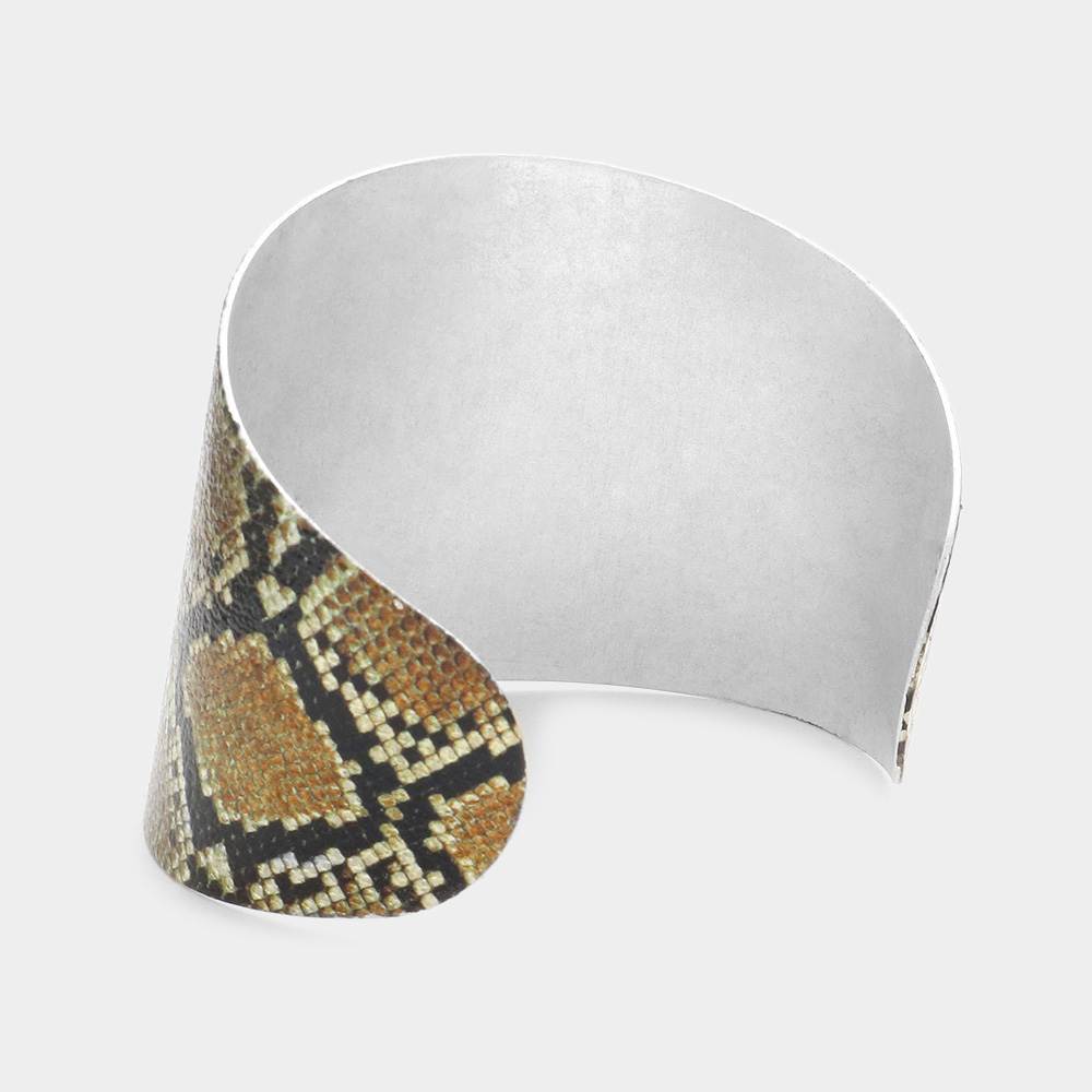 Snake Skin Print Centered Teardrop Metal Pendant Necklace
