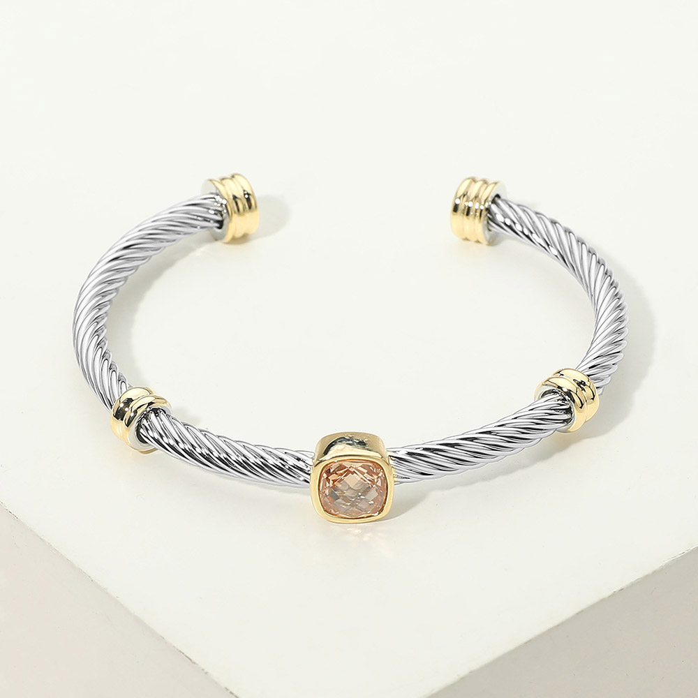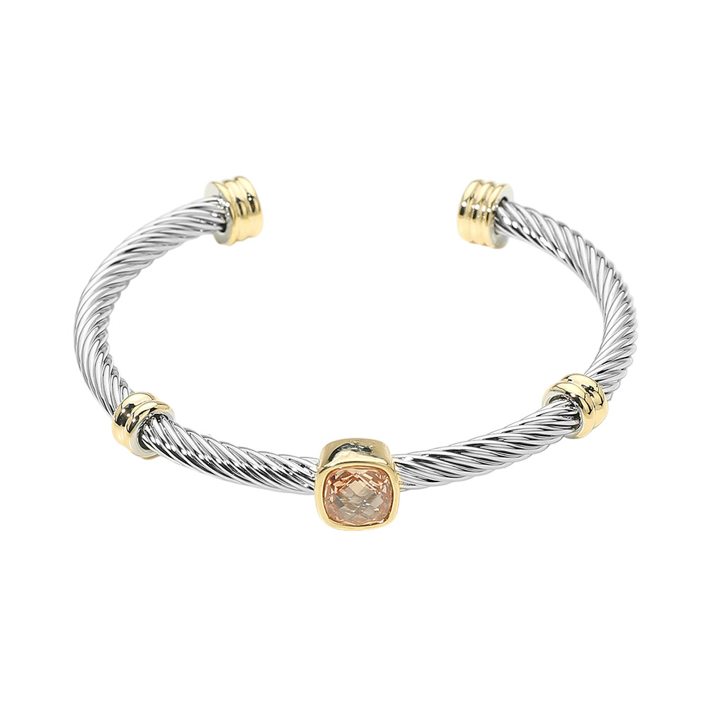 Square CZ Bezel Accent Two Tone Twisted Cable Cuff Bracelet Square CZ Bezel Accent Two Tone Twisted Cable Cuff Bracelet Square CZ Bezel Accent Two Tone Twisted Cable Cuff Bracelet