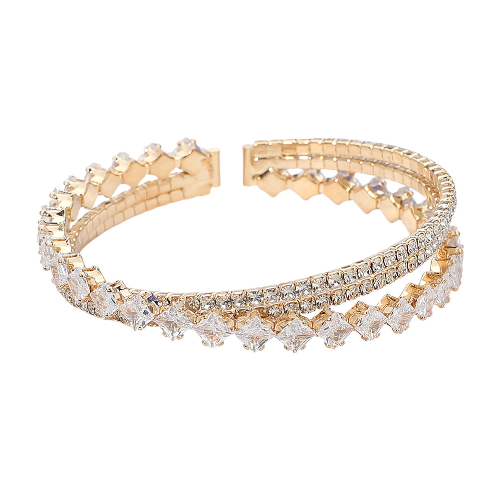 Square CZ Stone Dual Row Adjustable Evening Cuff Bracelet
