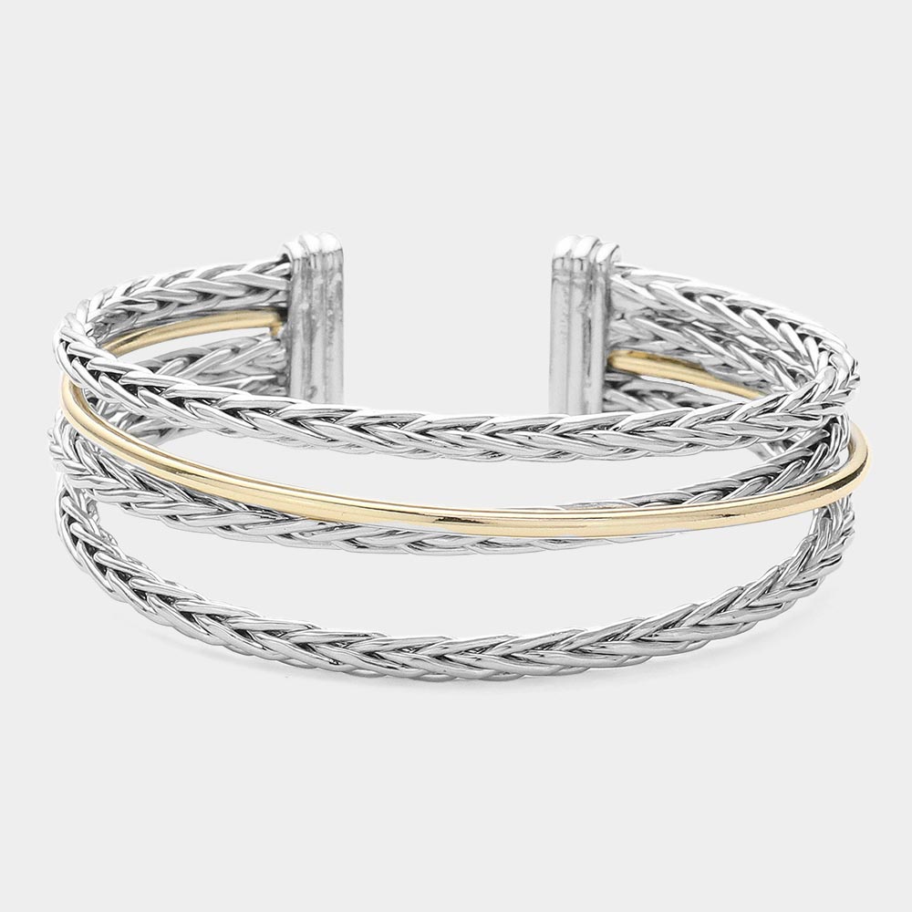 Two Tone Braided Metal Cuff Bracelet