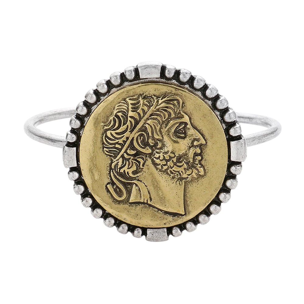 Two Tone Coin Metal Disc Cuff Bracelet