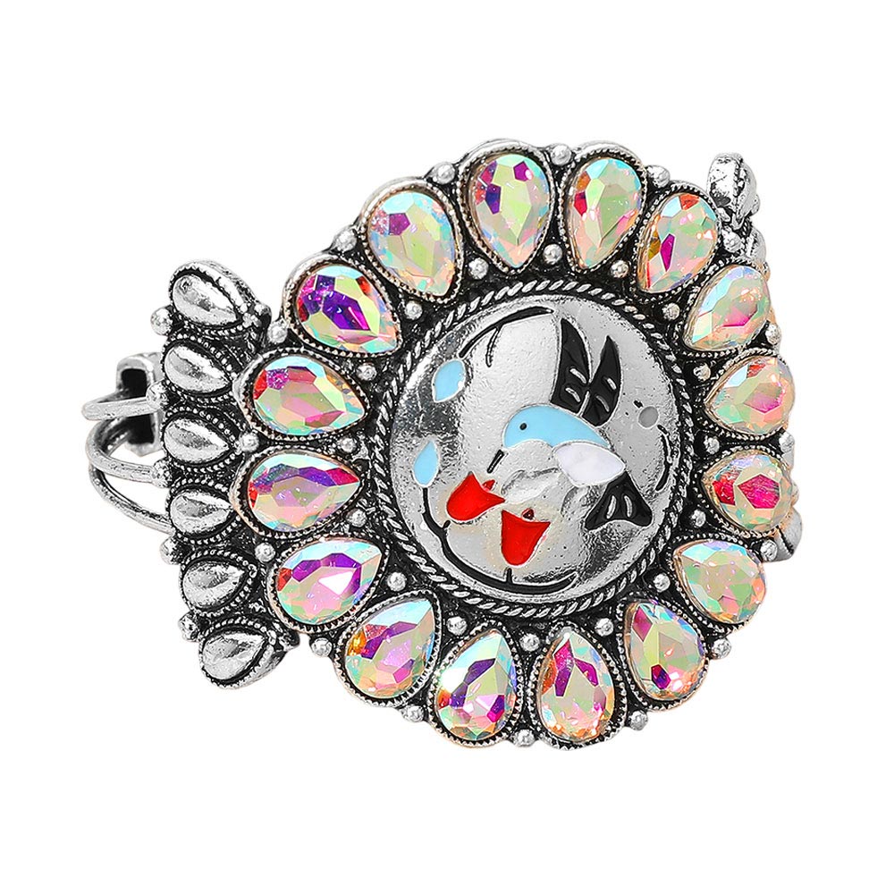 • Make a bold statement with this western-inspired hummingbird cuff bracelet featuring an ornate center scene framed by faceted teardrop accents. The adjustable open design sits comfortably on the wrist, adding radiant sparkle and artistic flair to casual outfits, festivals, or special events.