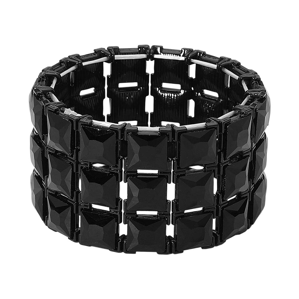 3-Rows Square Stone Stretch Evening Bracelet 3-Rows Square Stone Stretch Evening Bracelet