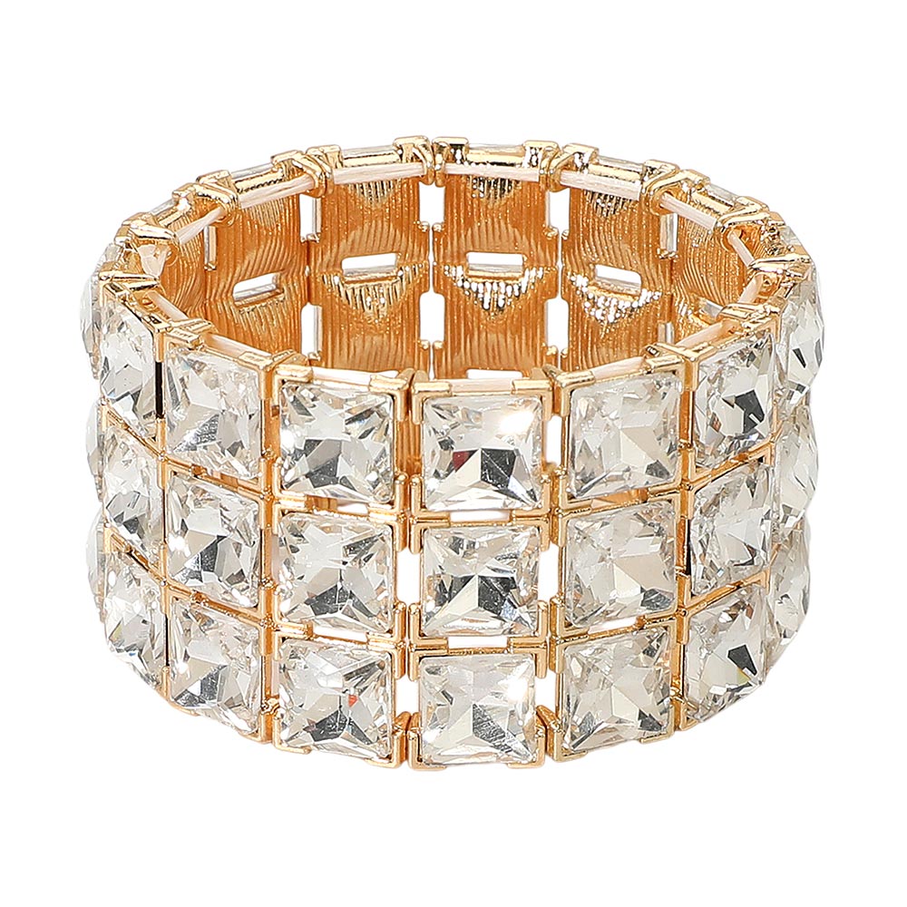 Details • Size : 1.5" H, 2.25" D • Stretchable • Make a striking statement with this square-cut crystal stretch bracelet designed for standout brilliance and effortless wear. Its bold, structured layout adds refined sparkle to evening looks or event ensembles, offering a glamorous finishing touch that catches every light beautifully.