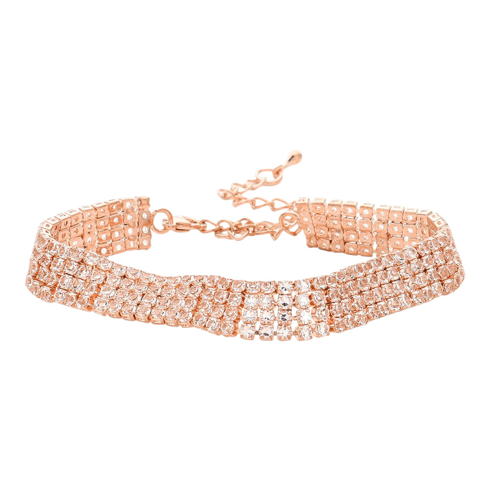 Details • Size : 0.4" H, 7" + 2" L • Lobster Clasp Closure • This four-row cz crystal bracelet delivers a perfect balance of sparkle and sophistication. Its layered design catches the light beautifully, adding elegance to any look. Ideal for evening wear, weddings, or special occasions, this bracelet is a timeless accessory that exudes refined glamour. • CZ Cubic Zirconia