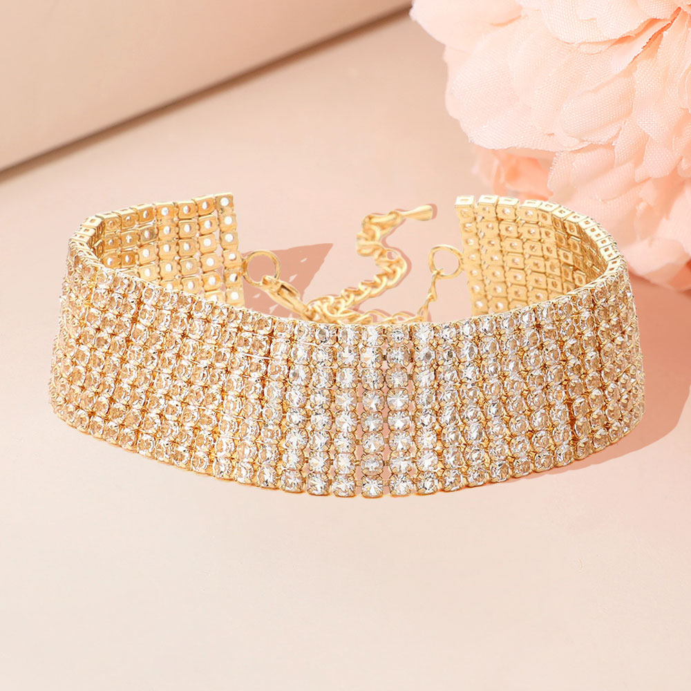 • This wide cz crystal statement bracelet dazzles with rows of shimmering stones that exude luxury and confidence. Perfect for formal events or adding glamour to any outfit, it offers a bold, radiant look. A stunning accessory that brings sparkle and sophistication to every occasion.