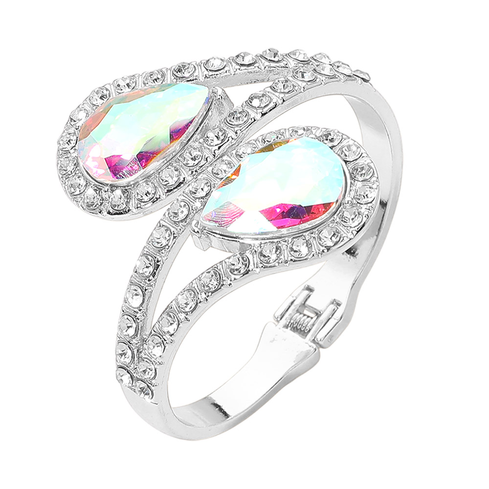 Bold Double Teardrop Tip Wrap Hinged Bangle Evening Bracelet