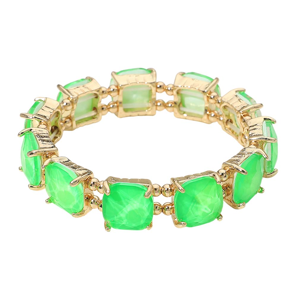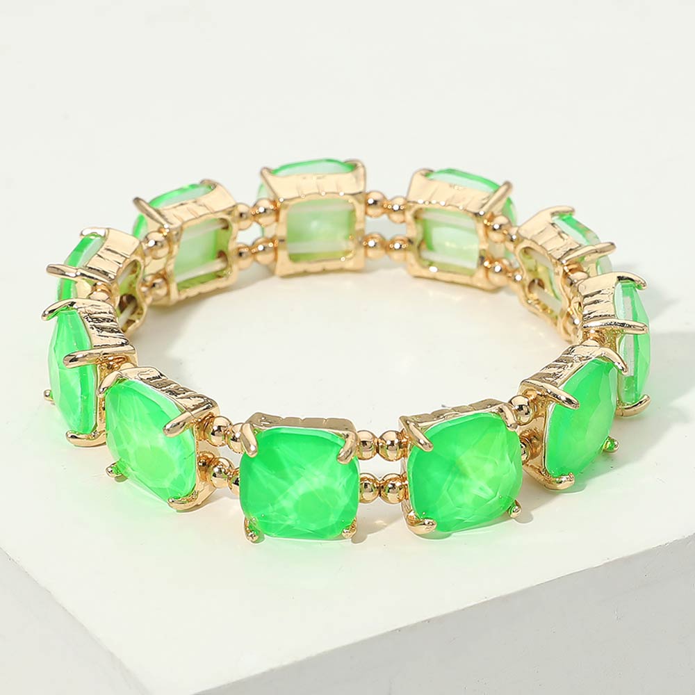 Cushion Square Stone Stretch Evening Bracelet