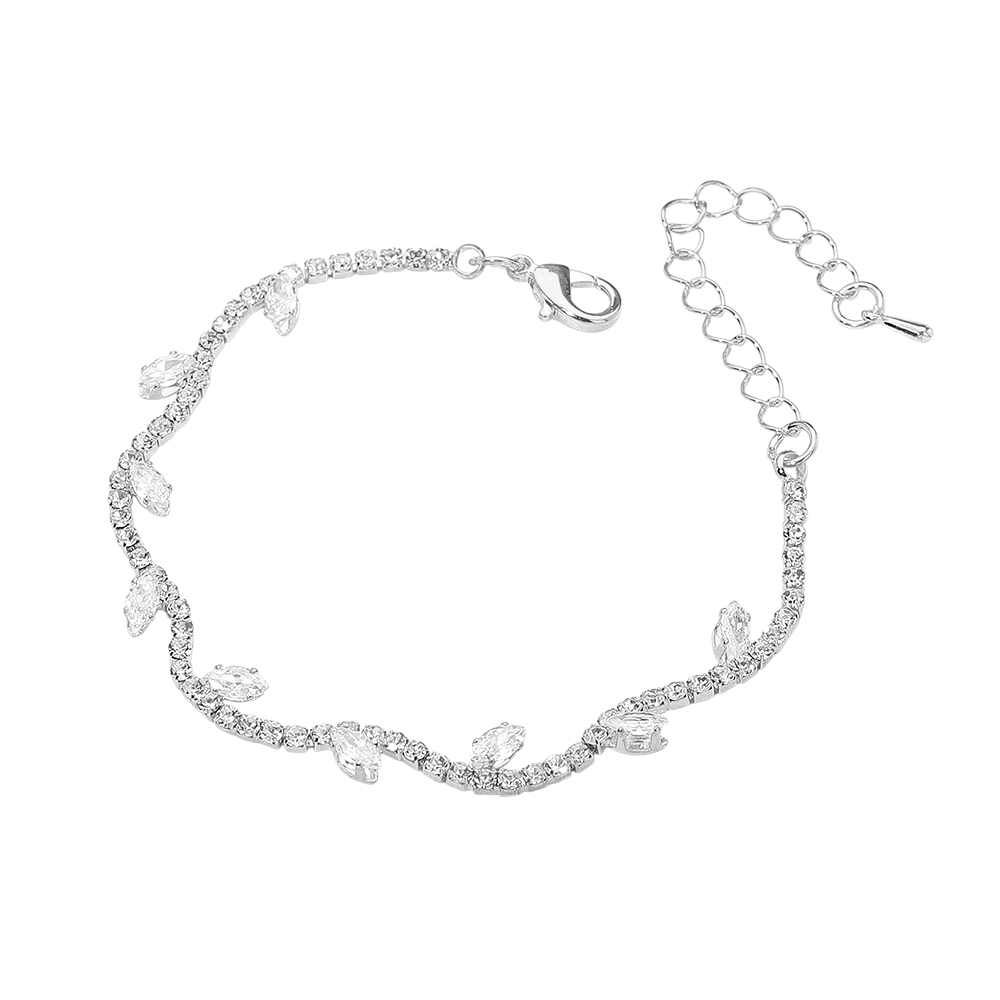 • Graceful tennis bracelet featuring marquise-shaped cluster vine accents along a slim, curved cz band. The delicate structure and adjustable clasp create a refined silhouette that complements any elegant or formal style, adding subtle brilliance to wristwear collections.