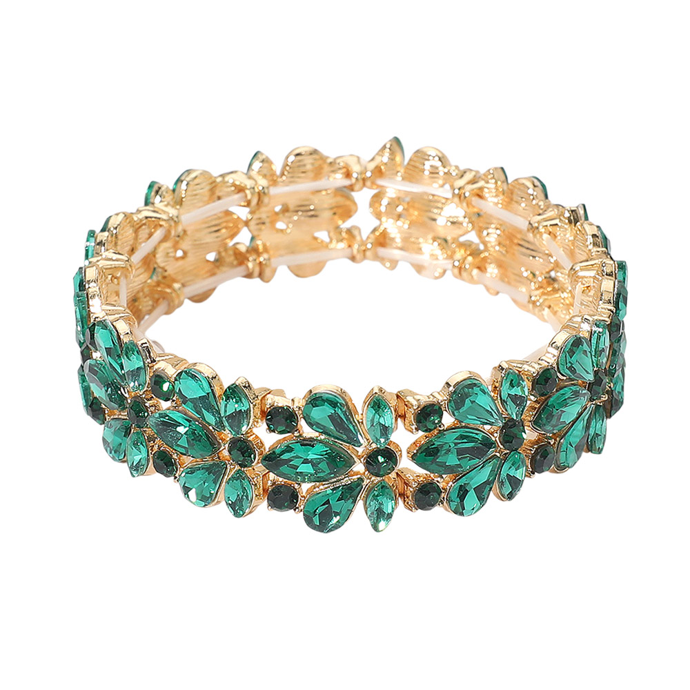 • An elegant stretch bracelet featuring layered floral detailing with a radiant, eye-catching finish. Designed for comfortable slip-on wear, ideal for parties, weddings, formal events, and special occasions, delivering refined style and glamour to elevate any outfit.