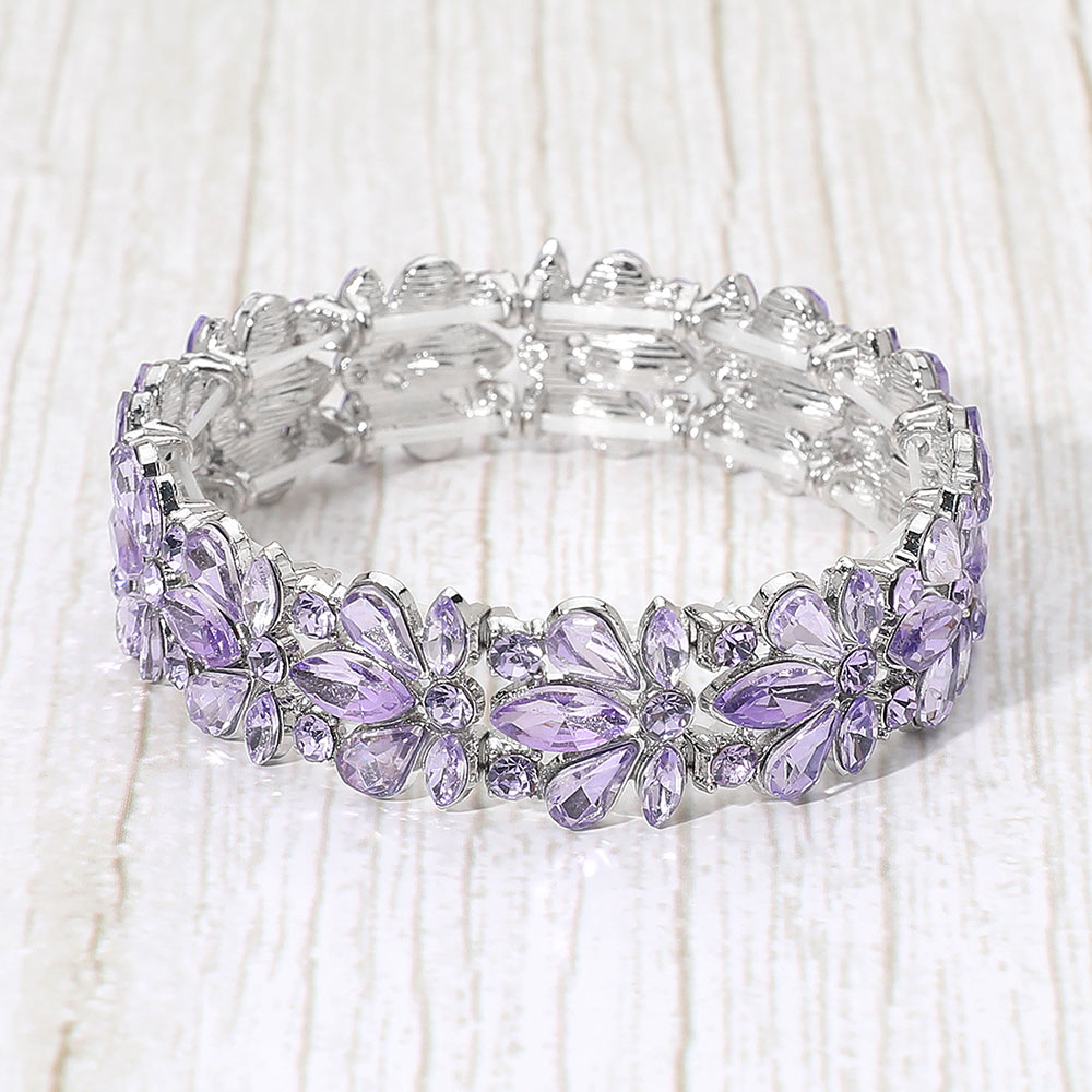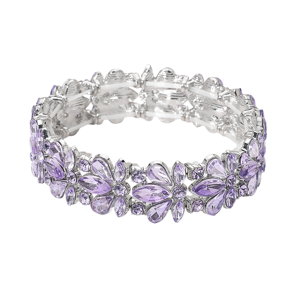 • An elegant stretch bracelet featuring layered floral detailing with a radiant, eye-catching finish. Designed for comfortable slip-on wear, ideal for parties, weddings, formal events, and special occasions, delivering refined style and glamour to elevate any outfit.