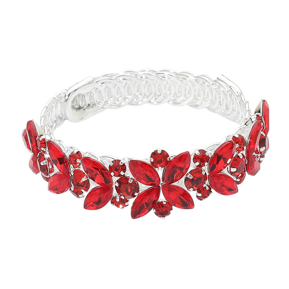 Glass Crystal Teardrop Floral Stretch Evening Bracelet