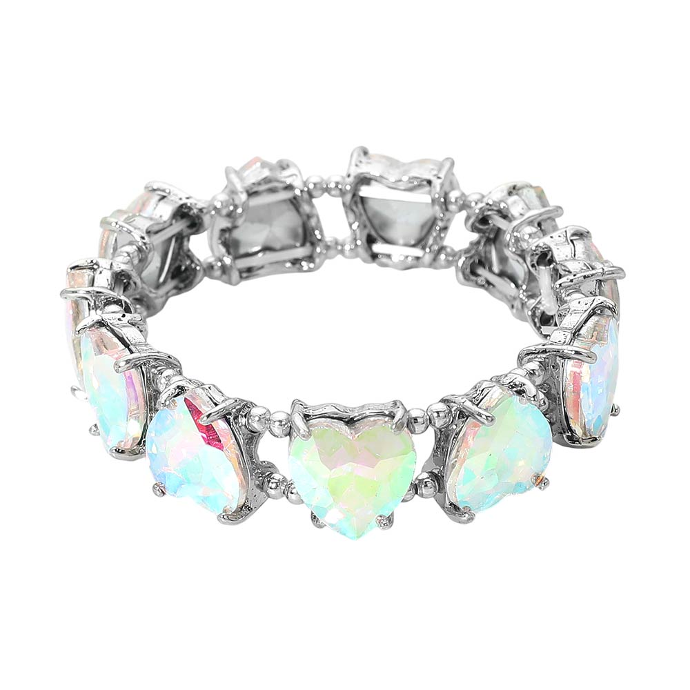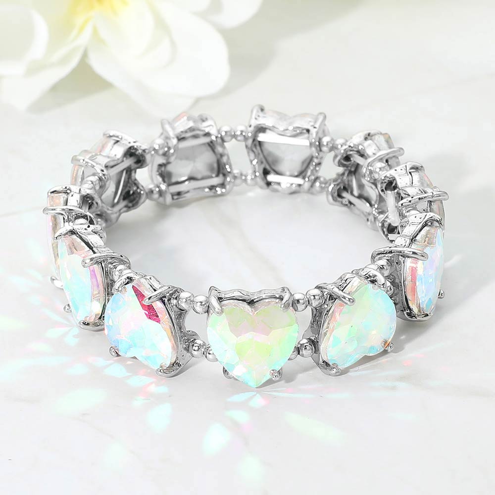 Heart Stone Cluster Beaded Stretch Evening Bracelet