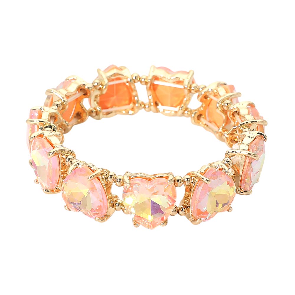 Heart Stone Cluster Beaded Stretch Evening Bracelet