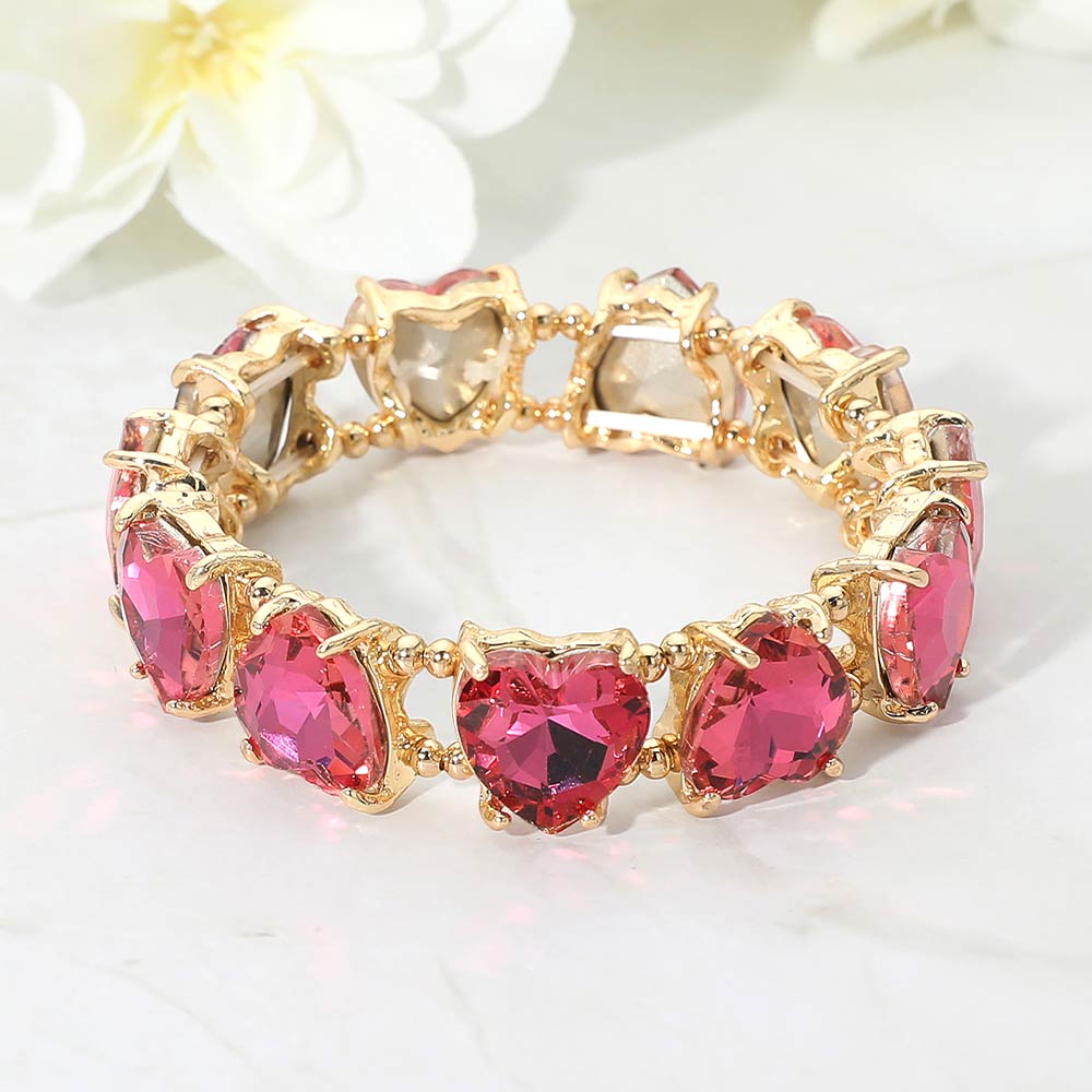 • This heart shape stretch bracelet features a continuous row of faceted heart accents that create eye-catching dimension and shine. Designed for comfortable slip-on wear, it delivers a bold yet romantic look that works for everyday styling, gifting moments, and statement jewelry collections across seasonal and special-occasion assortments.
