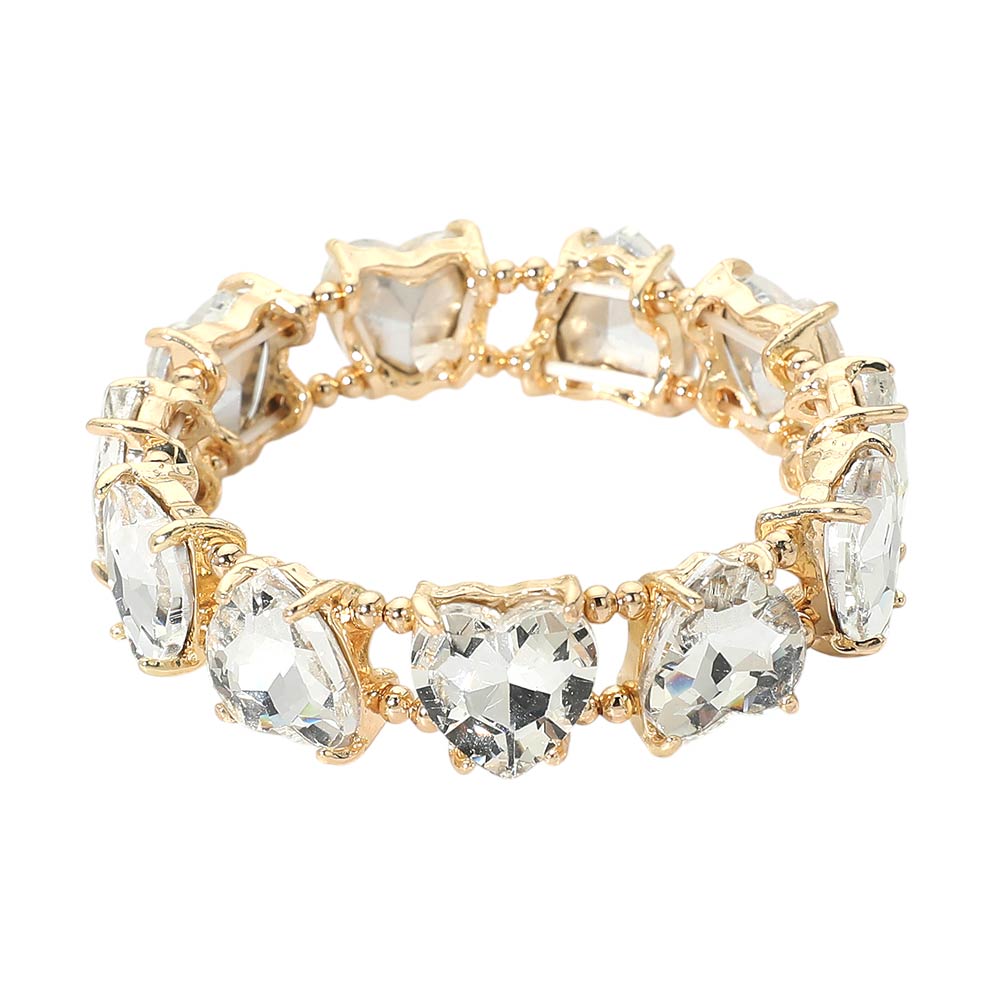 • This heart shape stretch bracelet features a continuous row of faceted heart accents that create eye-catching dimension and shine. Designed for comfortable slip-on wear, it delivers a bold yet romantic look that works for everyday styling, gifting moments, and statement jewelry collections across seasonal and special-occasion assortments.
