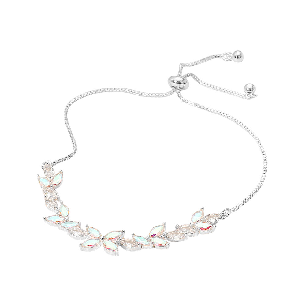 Marquise CZ Stone Cluster Accent Adjustable Evening Bracelet