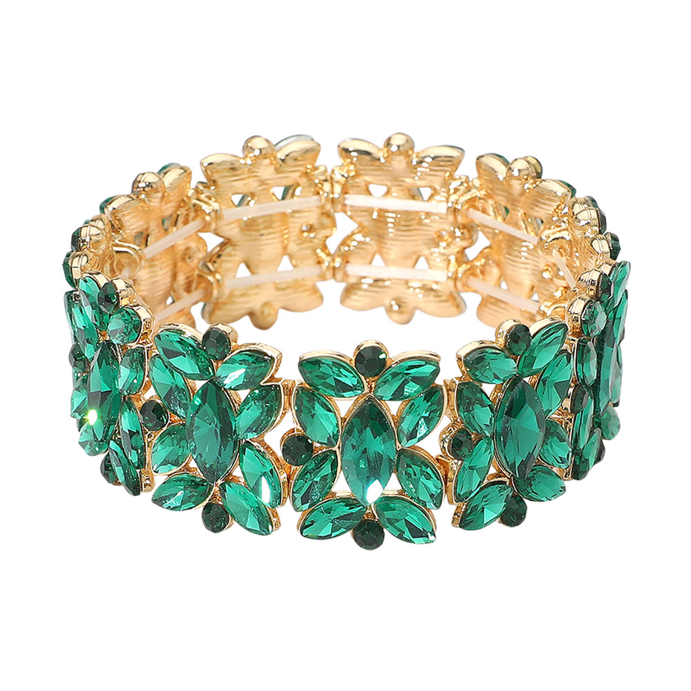 • A sparkling stretch bracelet with marquise floral crystal detailing designed for effortless elegance. Comfortable to slip on and perfect for parties, weddings, and formal events, adding radiant shine and a refined finishing touch to both evening and special-occasion looks.