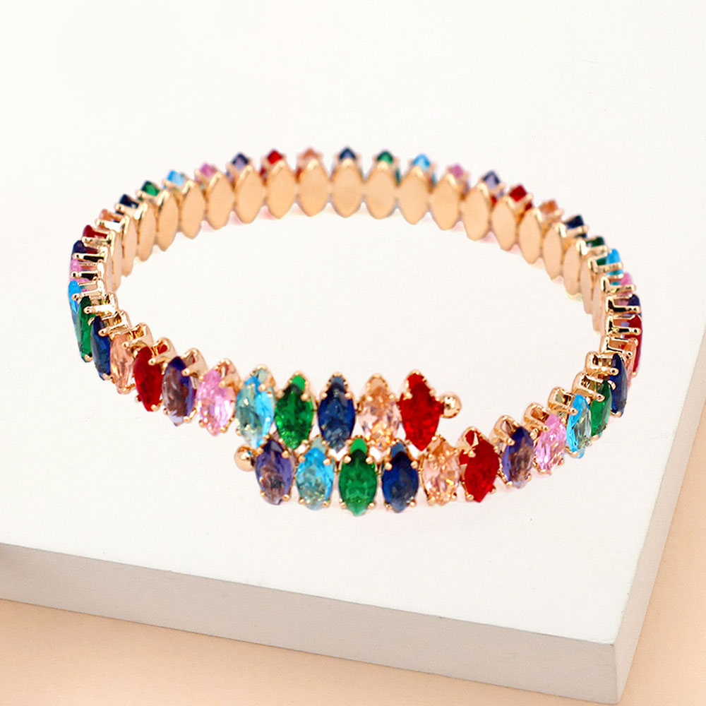 Reversible Stainless Steel Quatrefoil Charm Beaded Stretch Bracelet