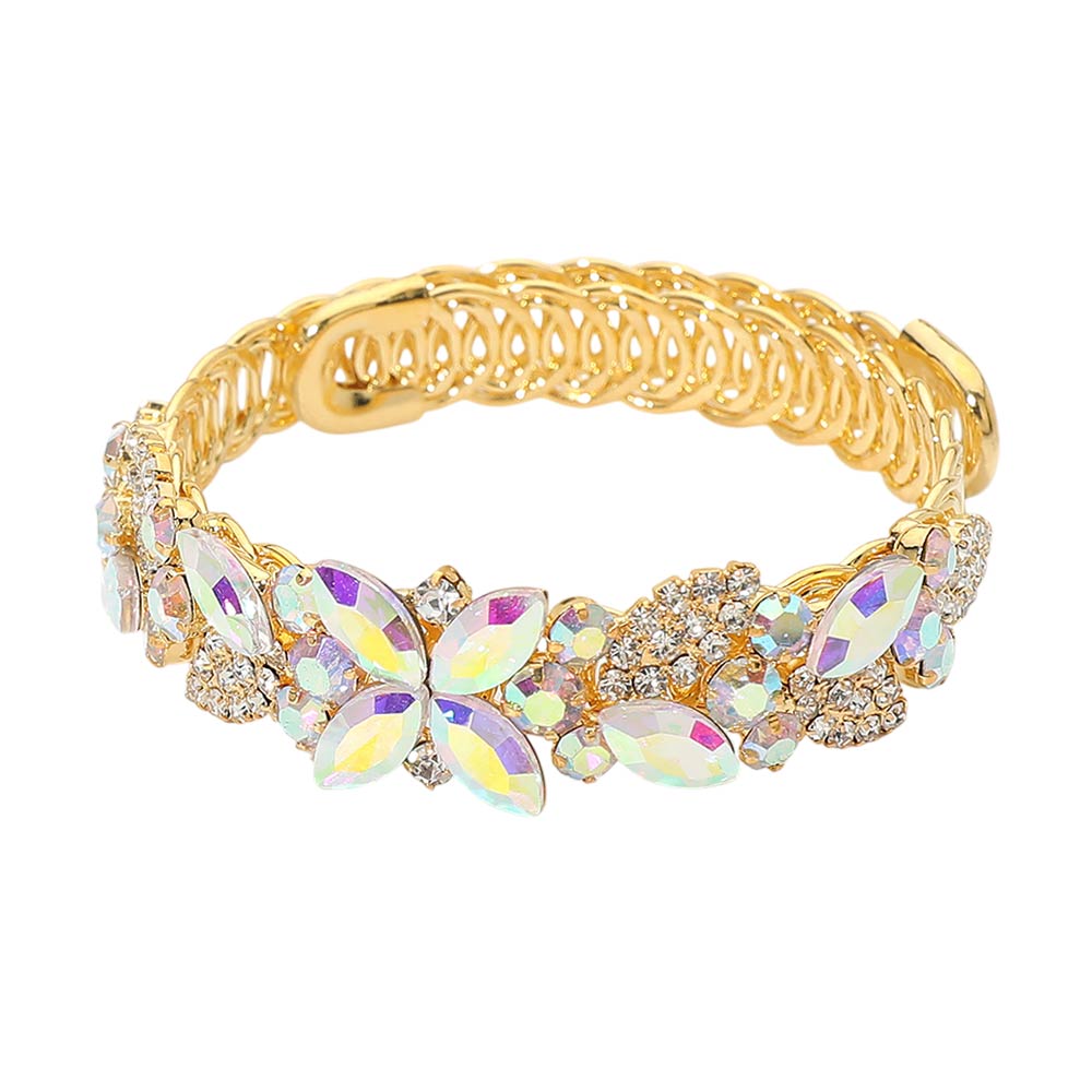 Marquise Stone Cluster Floral Embellished Adjustable Evening Bracelet