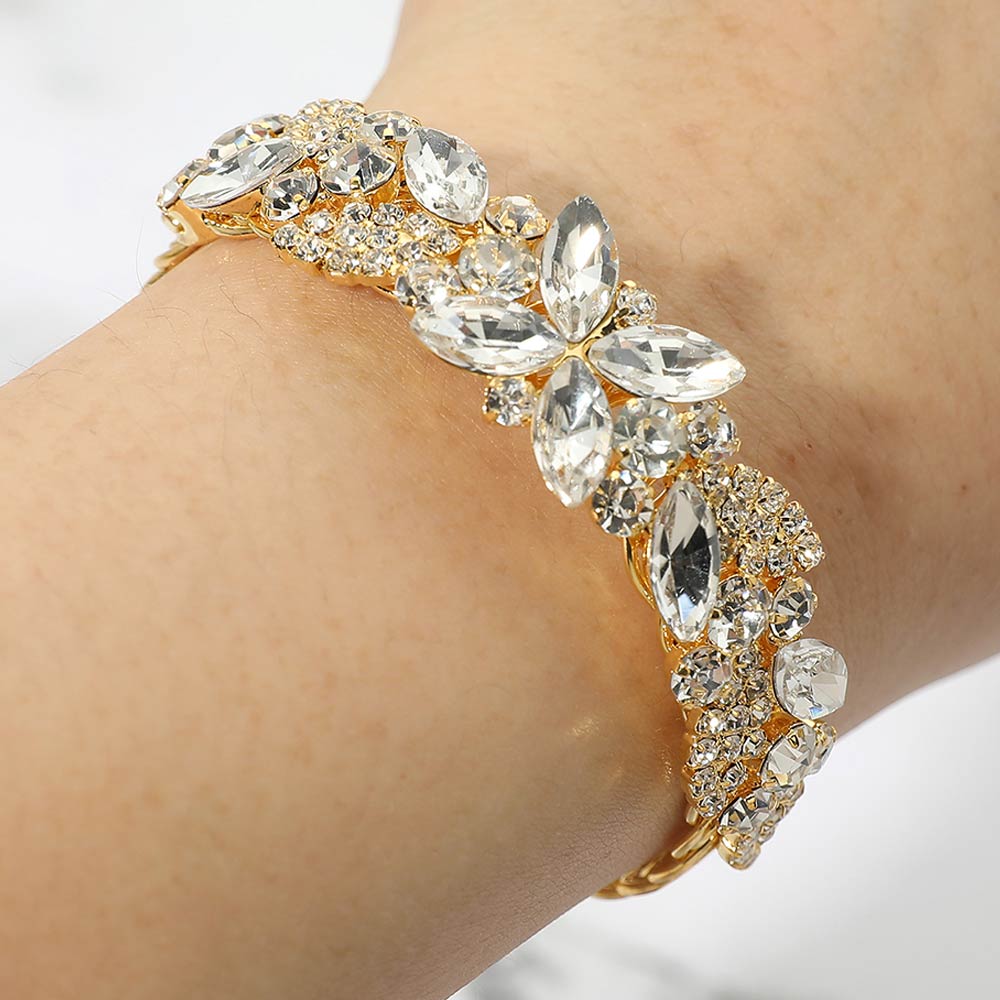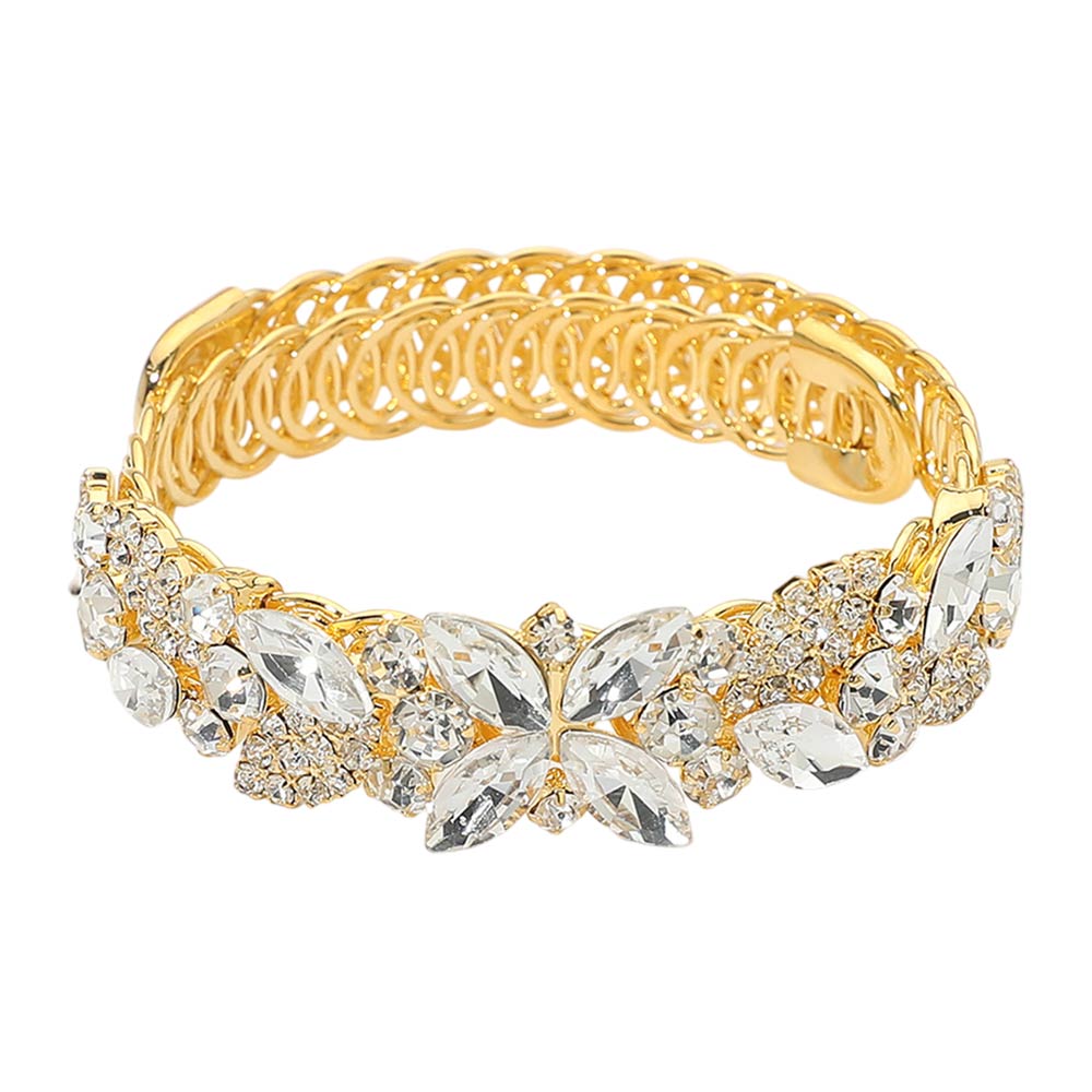 Marquise Stone Cluster Floral Embellished Adjustable Evening Bracelet Marquise Stone Cluster Floral Embellished Adjustable Evening Bracelet Marquise Stone Cluster Floral Embellished Adjustable Evening Bracelet