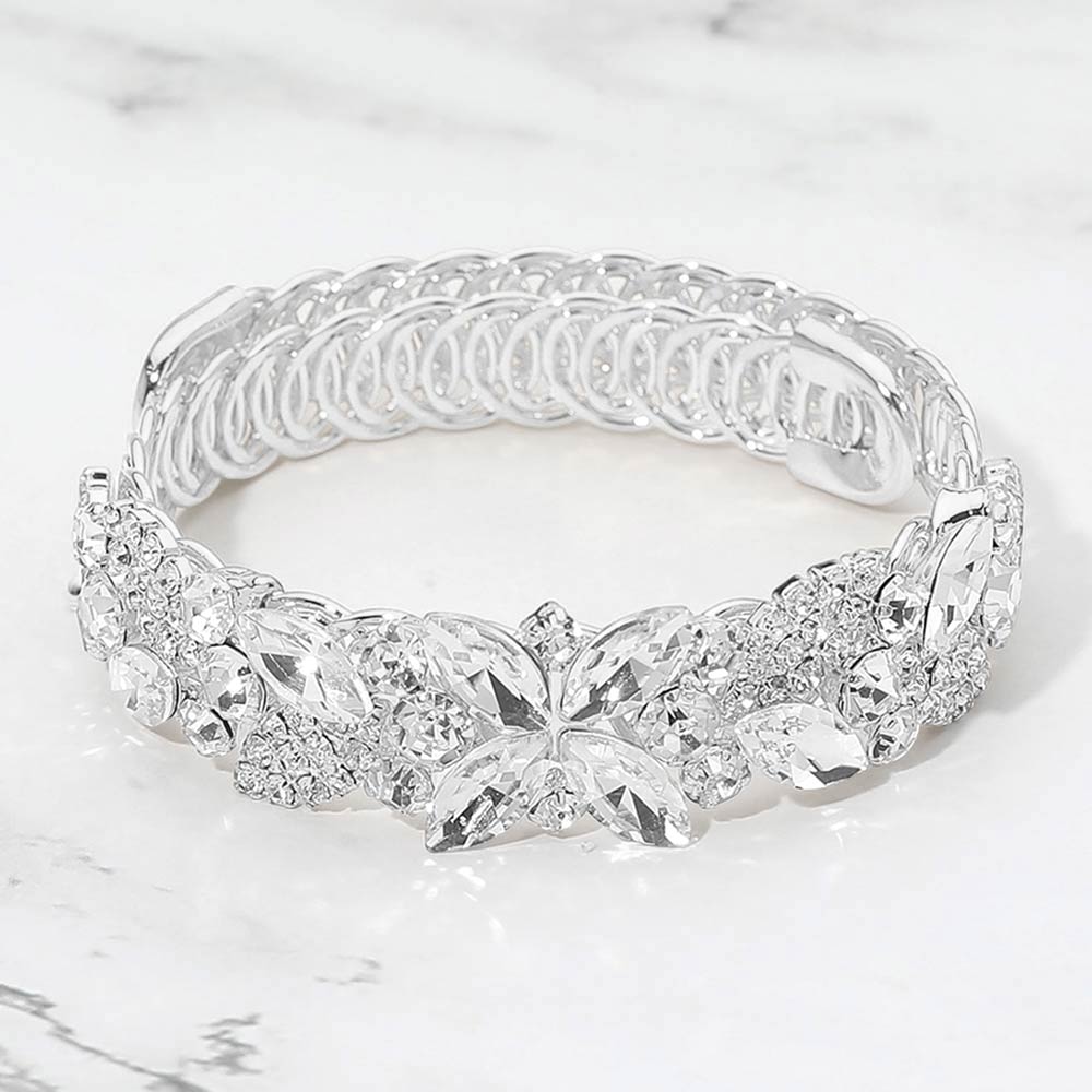 Marquise Stone Cluster Floral Embellished Adjustable Evening Bracelet