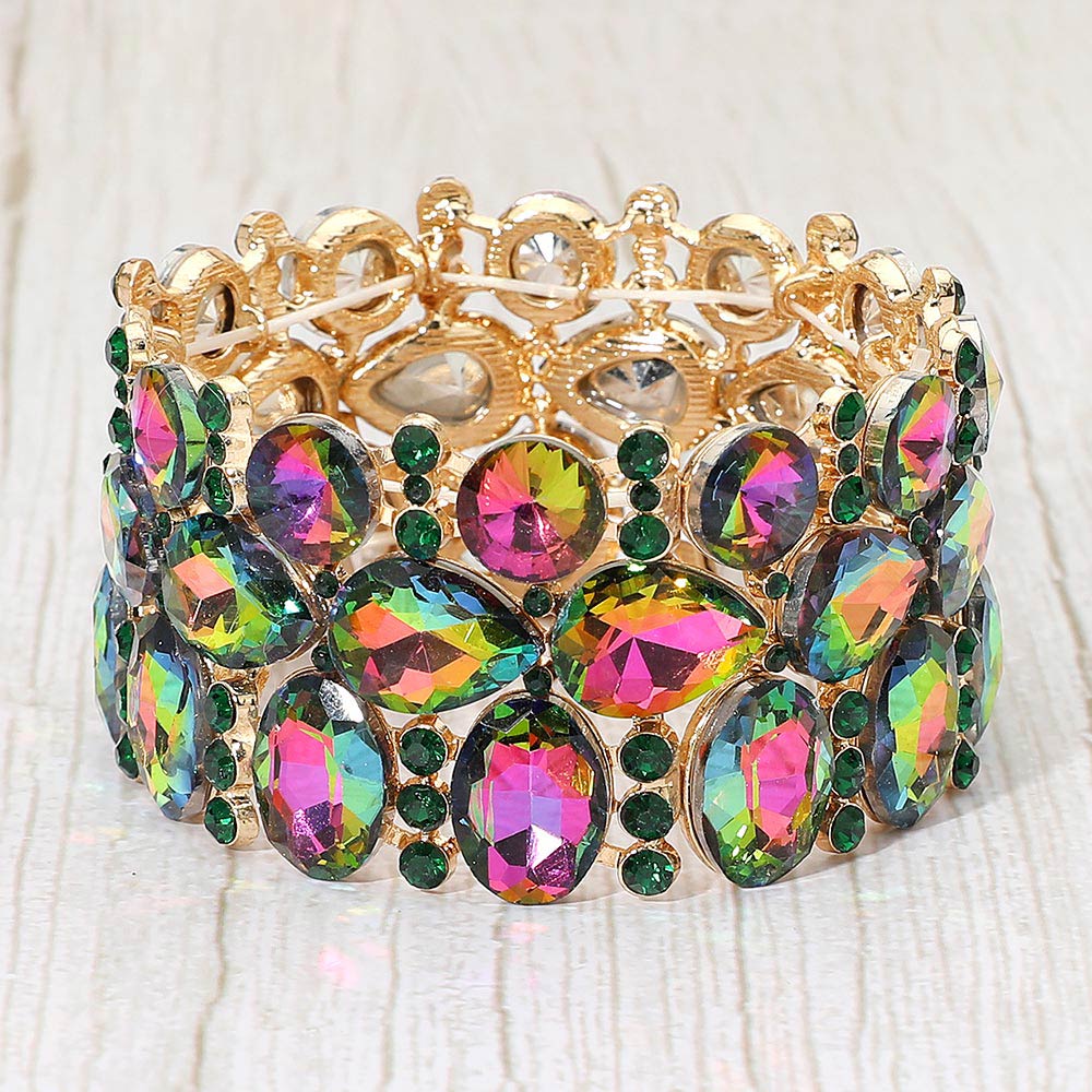 Multi Stone Cluster Evening Stretch Bracelet