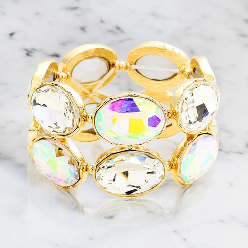 Pearl Accented Split Rhinestone Evening Cuff Bracelet
