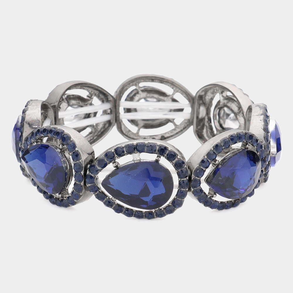 Pave Teardrop Trim Glass Crystal Stretch Evening Bracelet