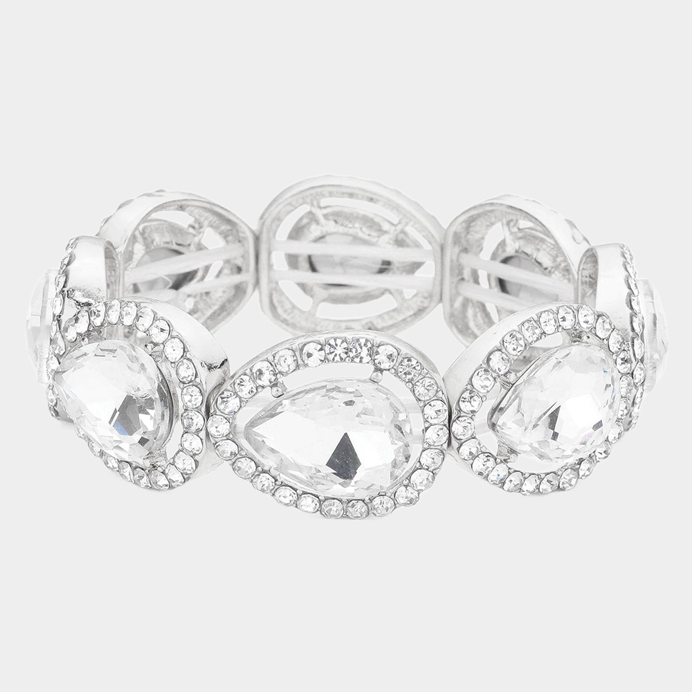 Pave Teardrop Trim Glass Crystal Stretch Evening Bracelet