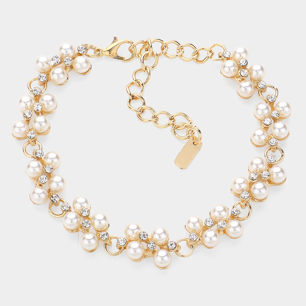 Pearl Rhinestone Ball Pointed Mesh Chain Layered Statement Necklace