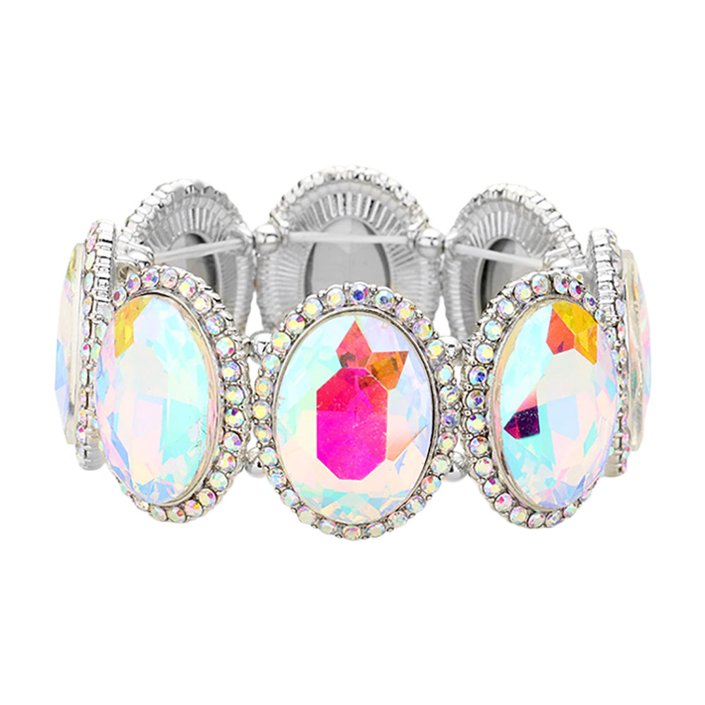 Details • Size : 1.25" H • Stretchable • Add glamour to your look with this oval crystal stretch bracelet featuring sparkling stones framed in dazzling accents. The flexible fit ensures comfort while delivering bold elegance. Ideal for weddings, parties, and special occasions where standout style matters.