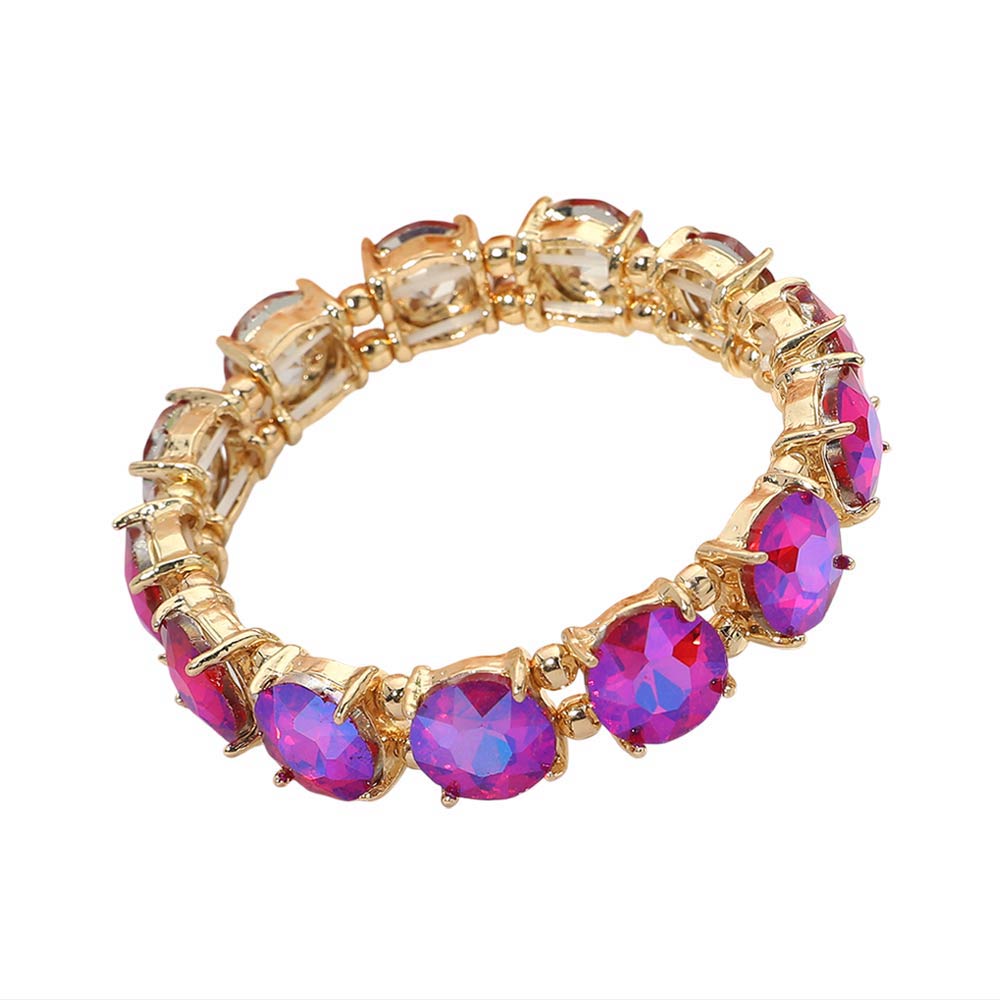 Round Stone Cluster Beaded Stretch Evening Bracelet