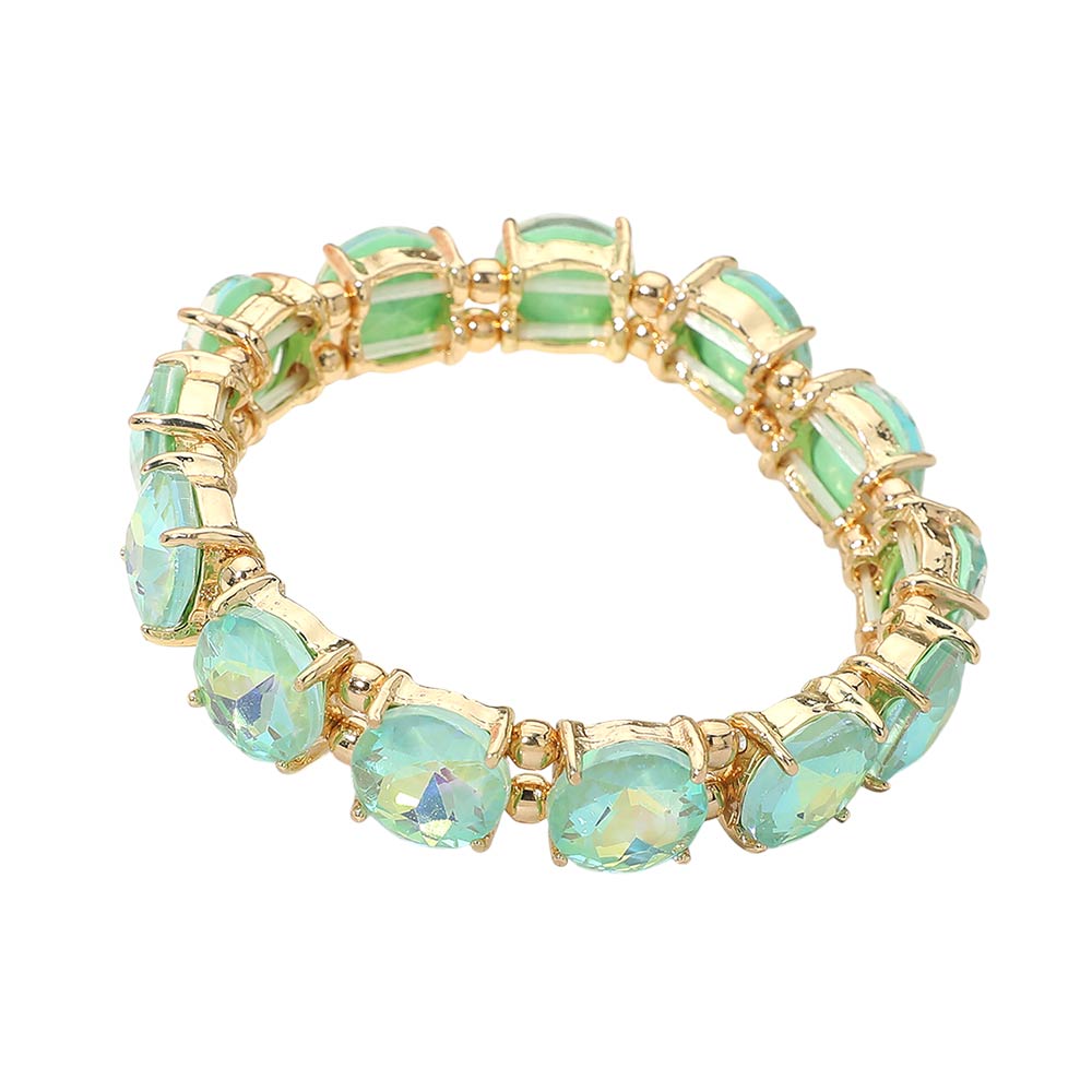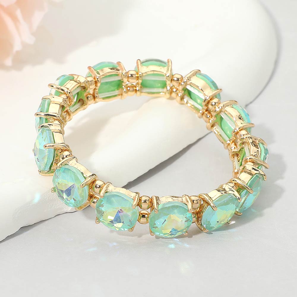 Round Stone Cluster Beaded Stretch Evening Bracelet