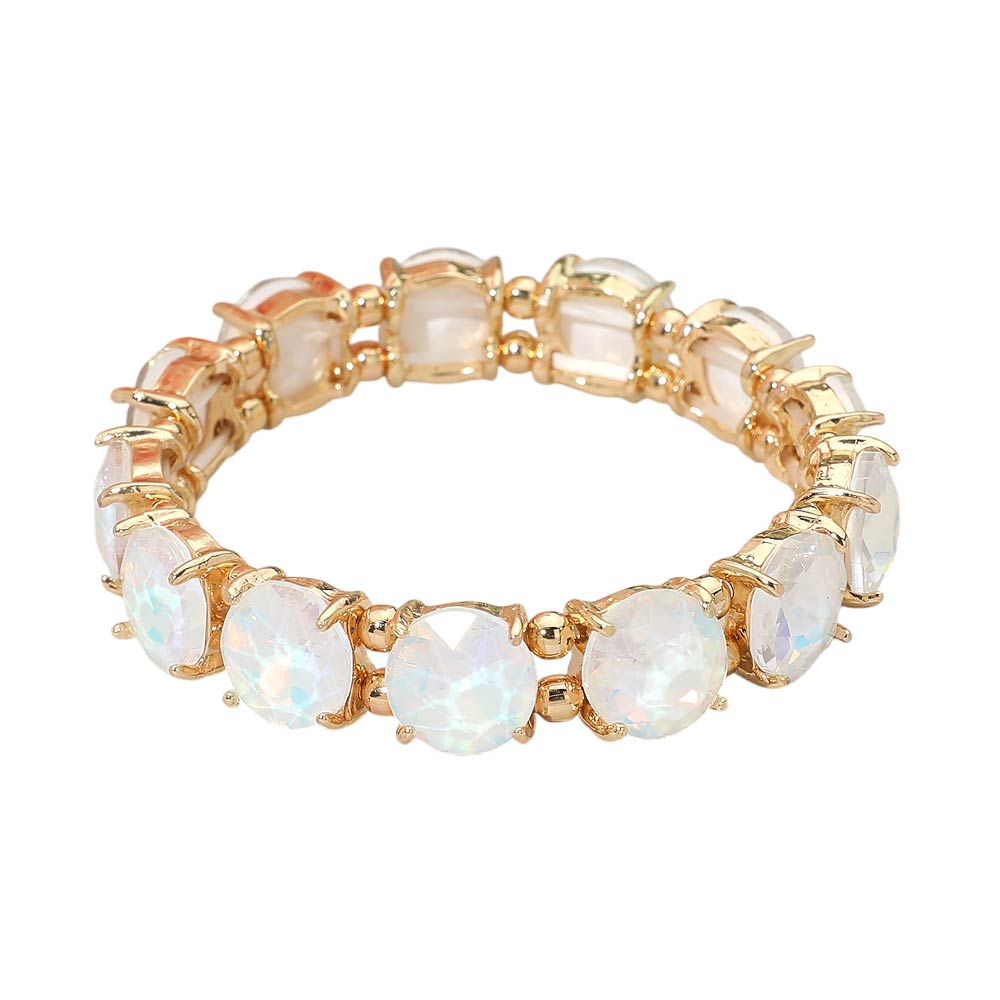 Round Stone Cluster Beaded Stretch Evening Bracelet