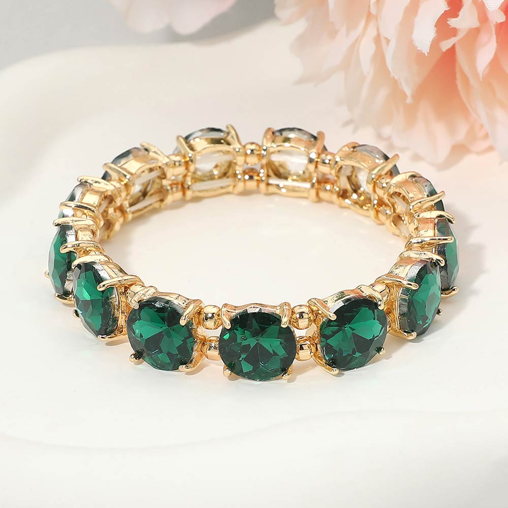 Round Glass Stone Cluster Evening Stretch Bracelet