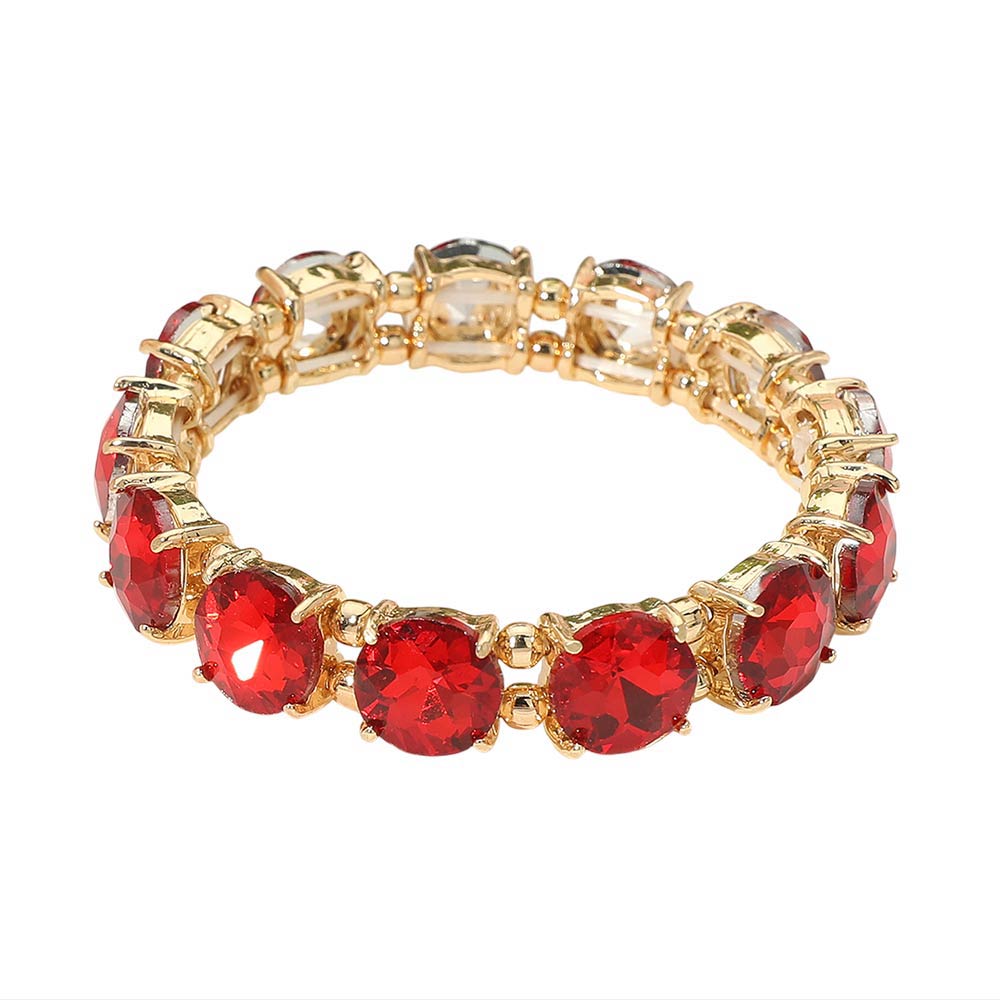 Round Stone Cluster Beaded Stretch Evening Bracelet