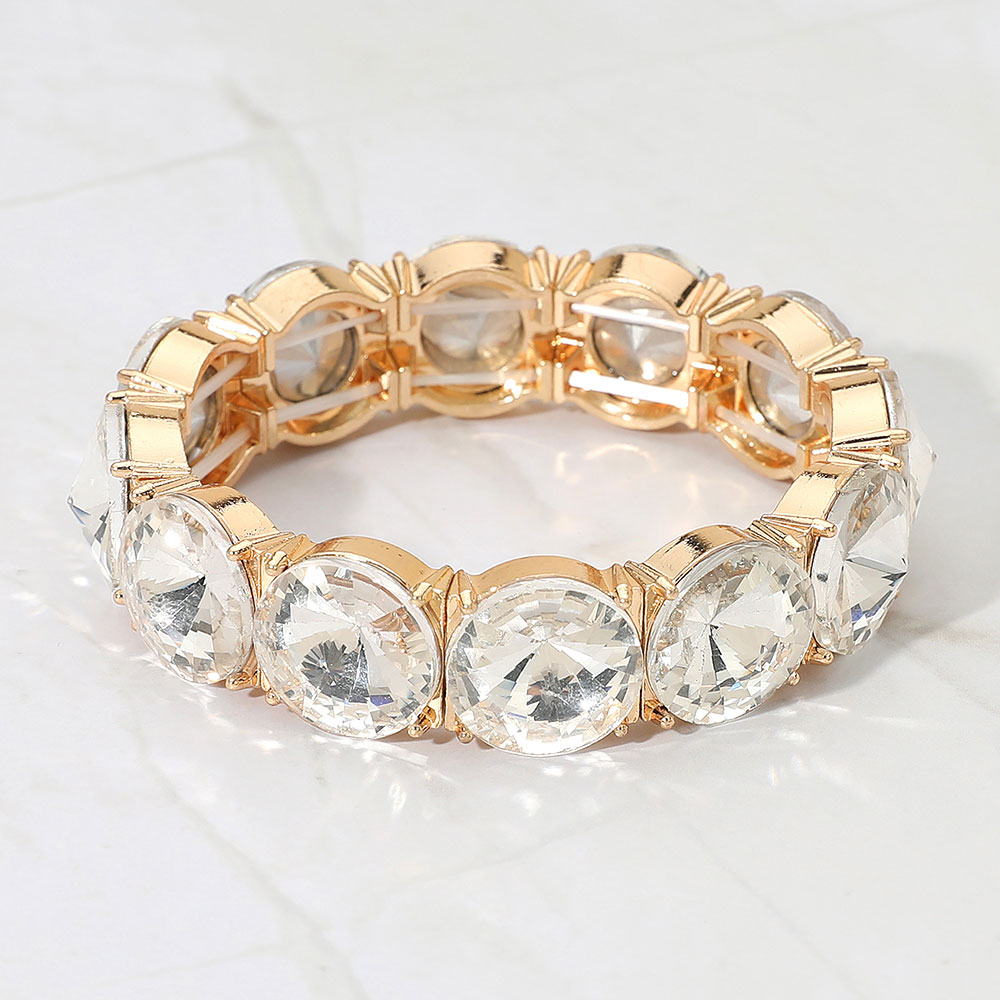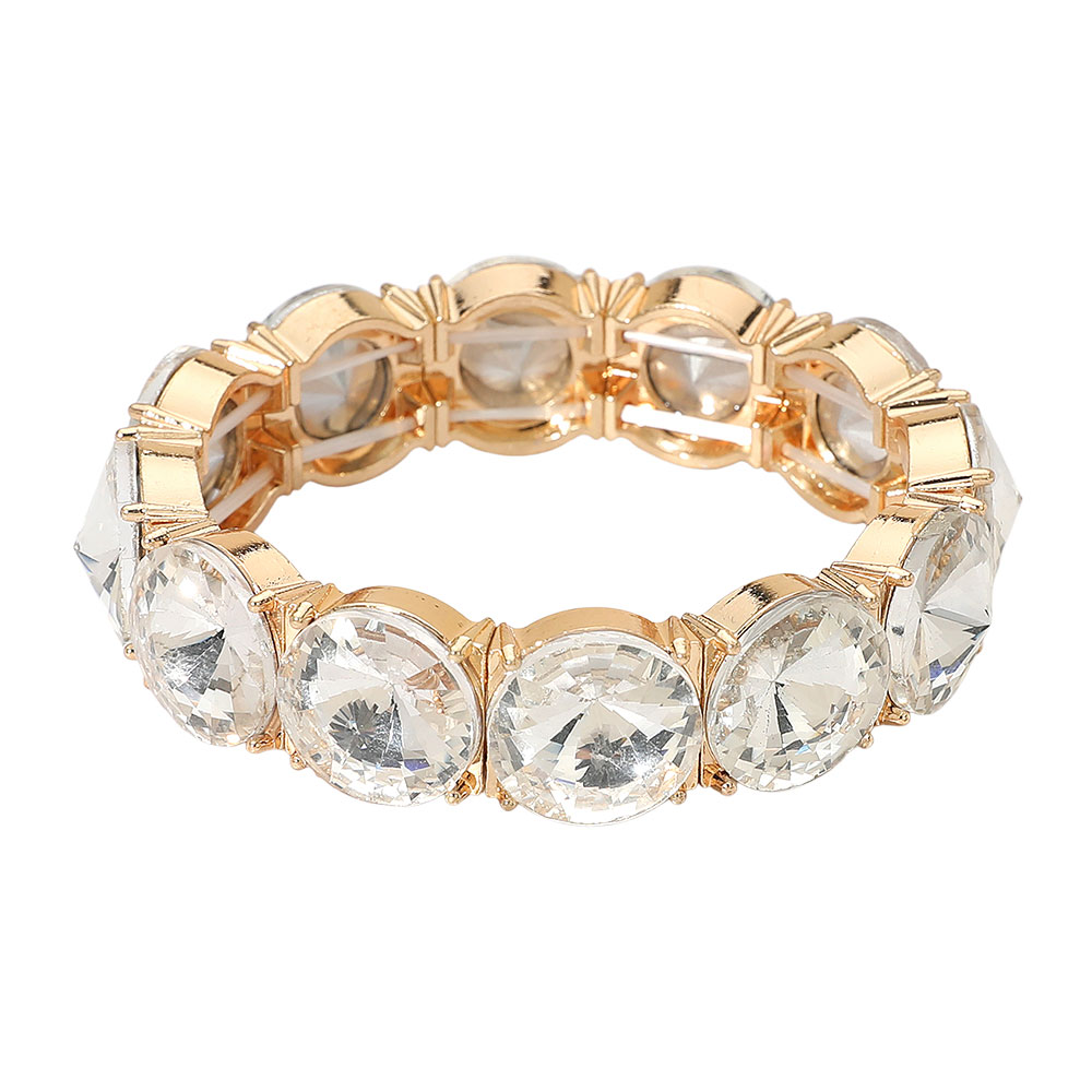 • Elegant stretch bracelet featuring large round-cut faceted stones arranged in a continuous band. The flexible fit offers easy wear while the sparkling design adds a refined touch to everyday and special occasion outfits.