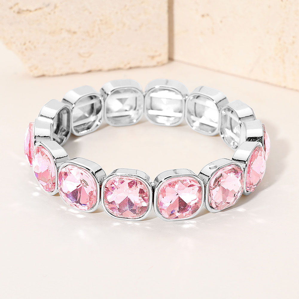 Square Cut Gem Beaded Stretch Evening Bracelet