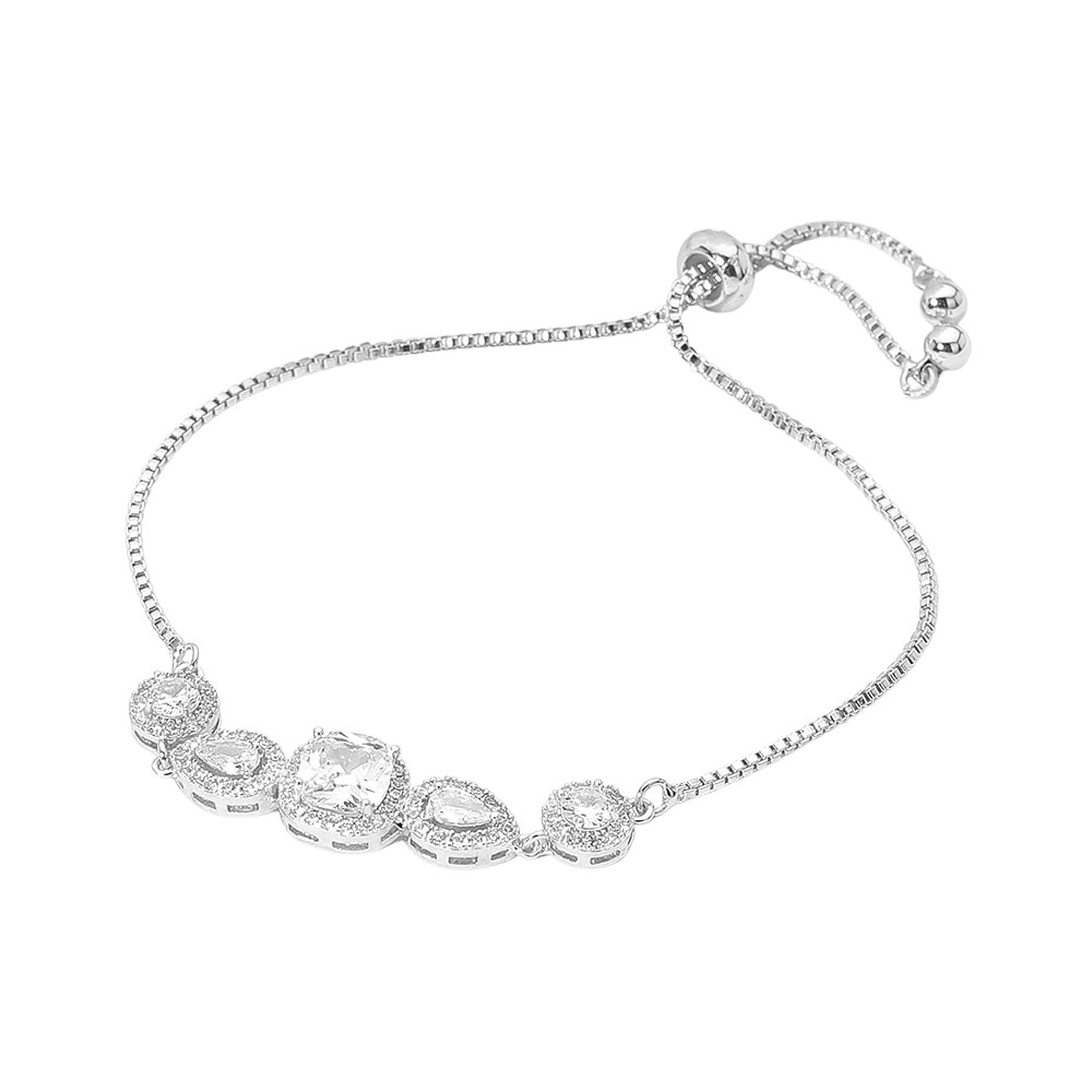 Square CZ Cushion Center Teardrop Round Stone Link Adjustable Evening Bracelet