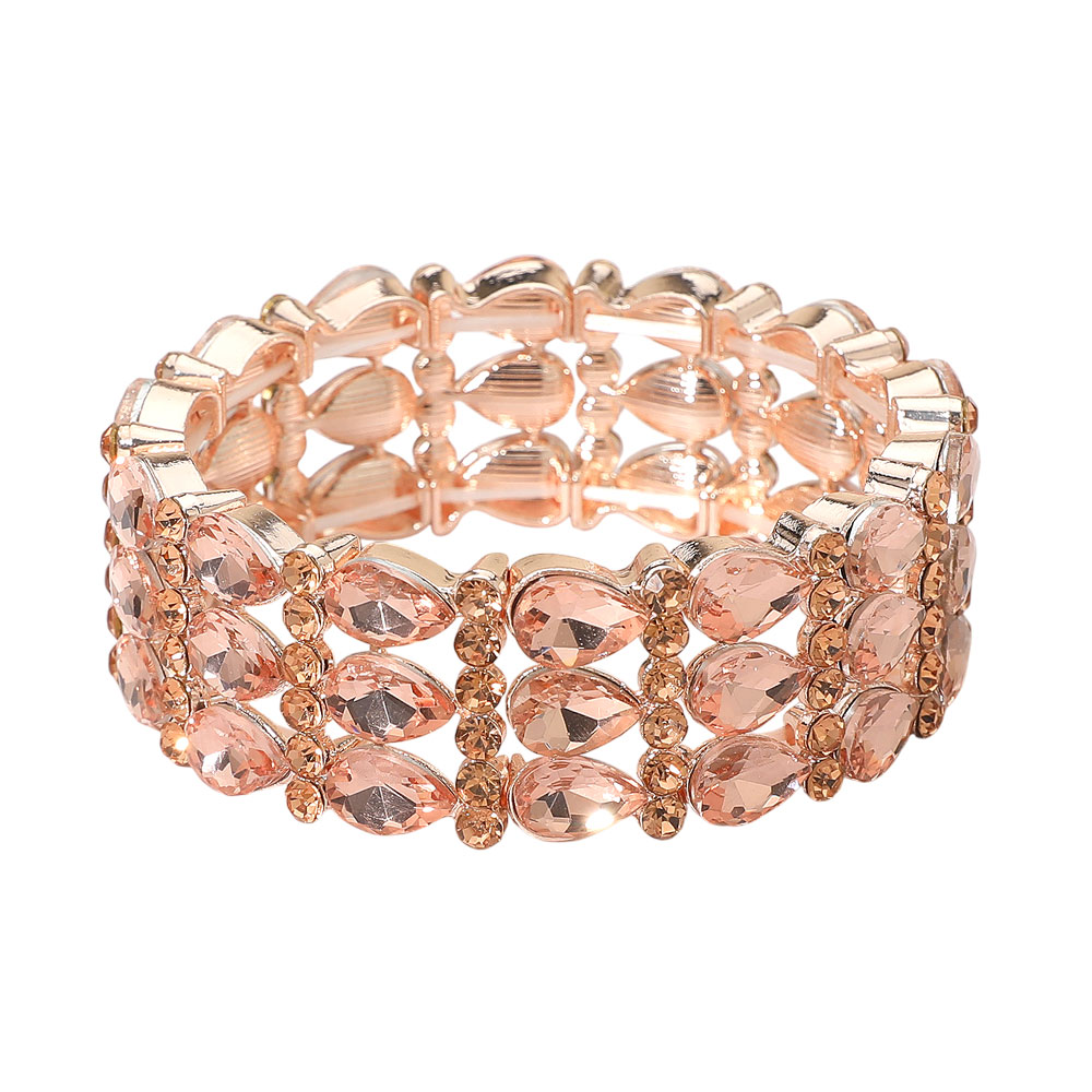 Three-row Teardrop Gem Beaded Stretch Evening Bracelet