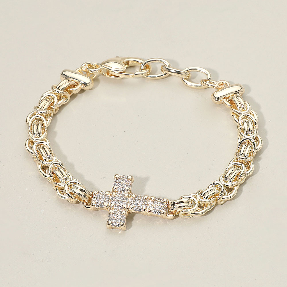 • Stylish bracelet featuring a radiant cross charm on a textured chain, offering an elegant accent for daily wear or special occasions. Adjustable design ensures a comfortable fit and makes it a thoughtful gift choice.