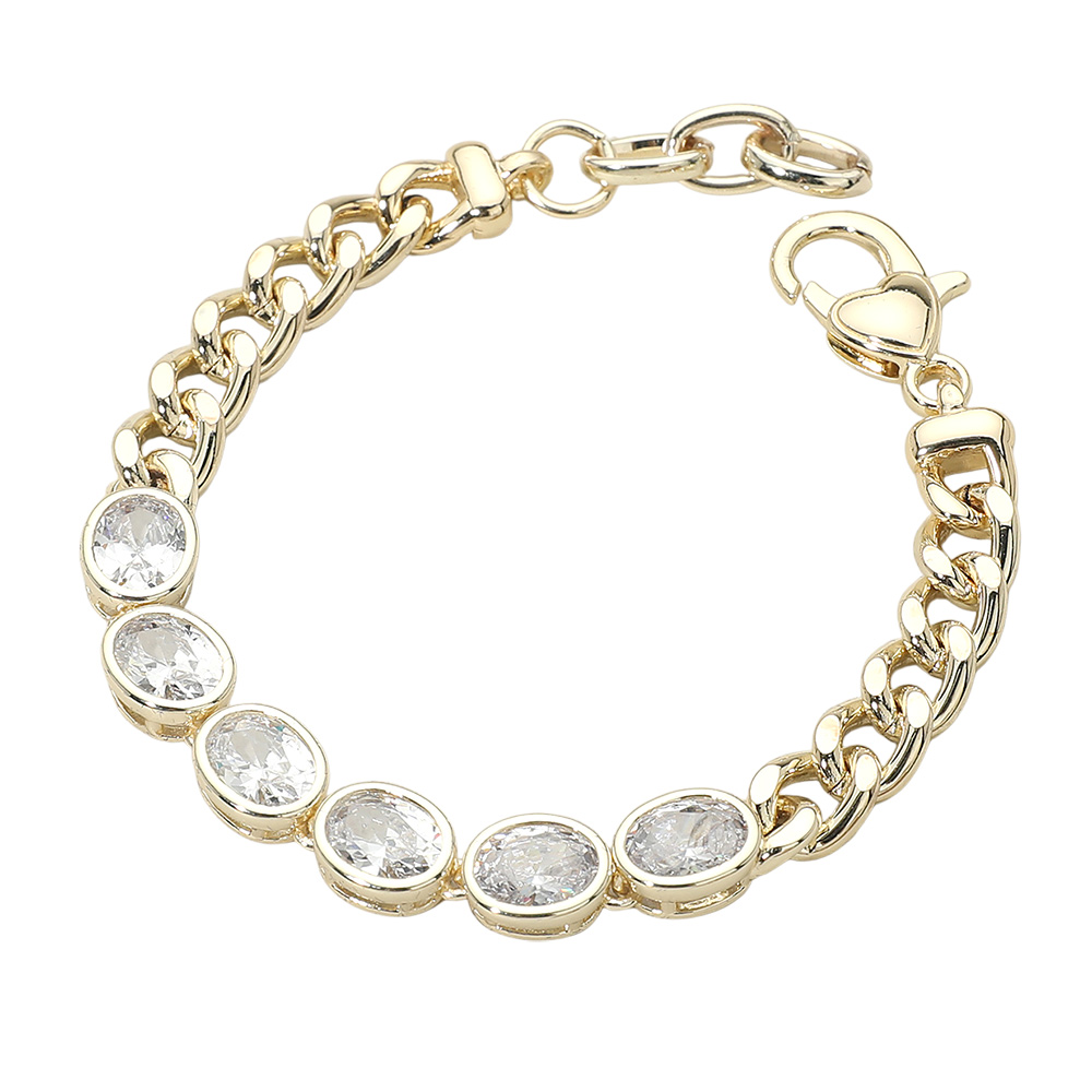 • Elegant station chain bracelet featuring oval crystal accents spaced along a sleek link design. This refined bracelet adds subtle sparkle and balance, making it ideal for everyday styling, gift assortments, and trend-forward jewelry collections seeking timeless appeal.