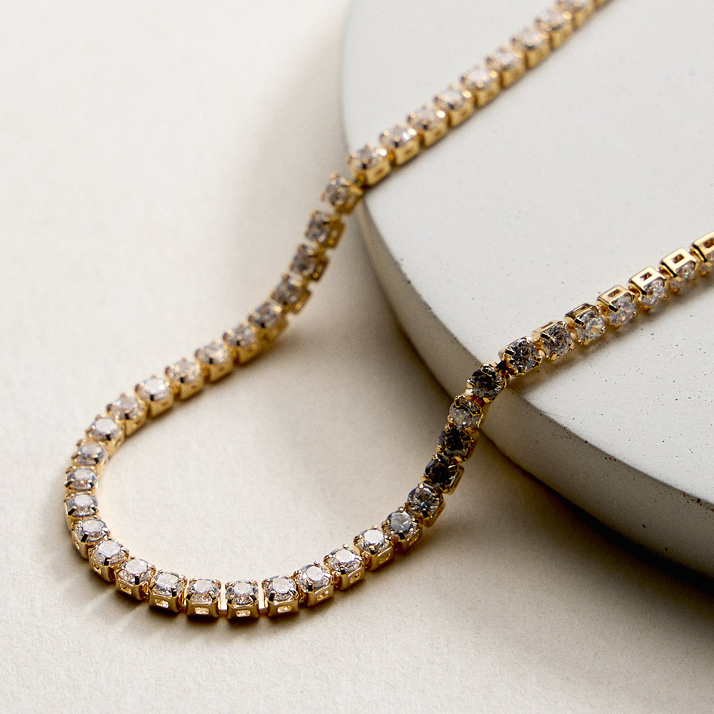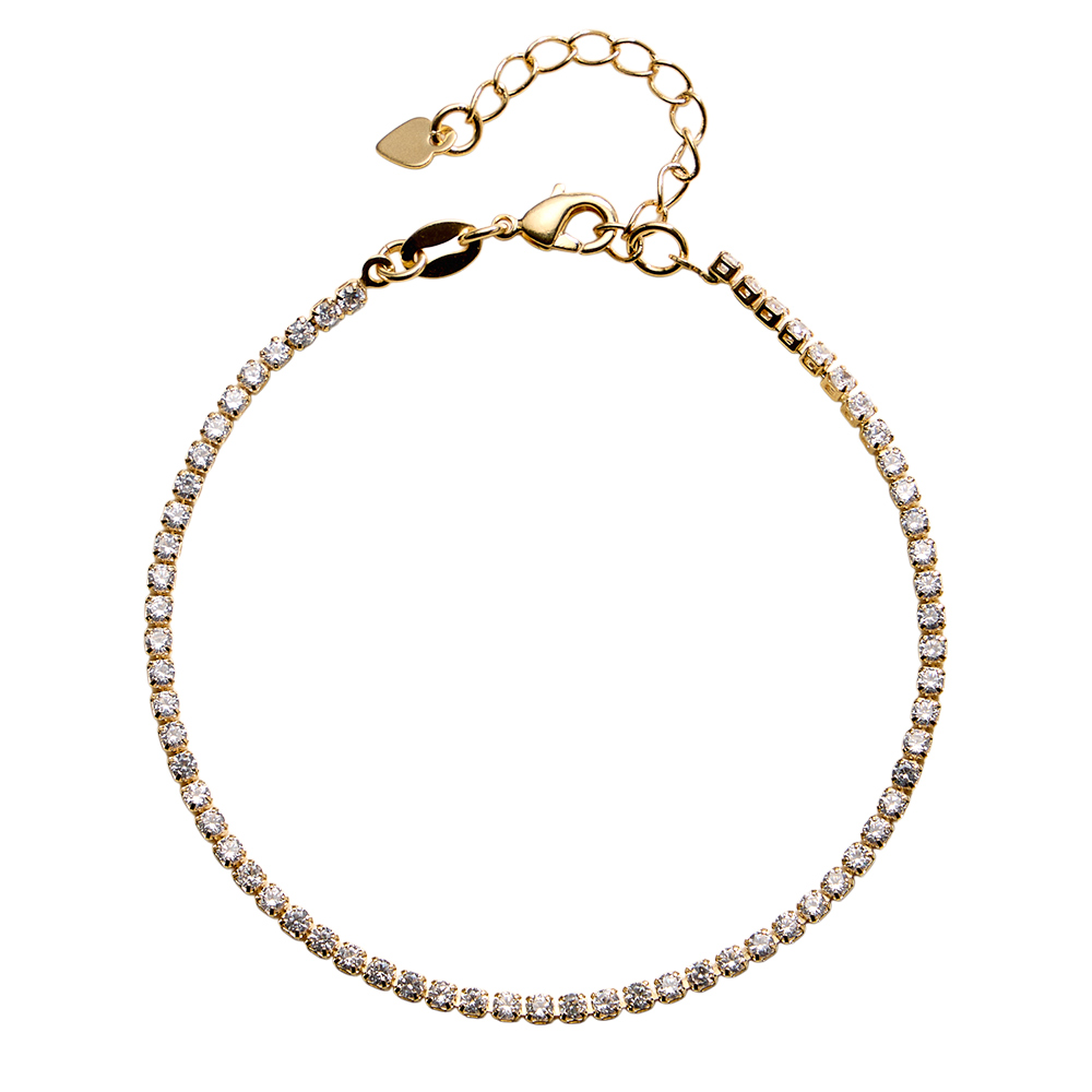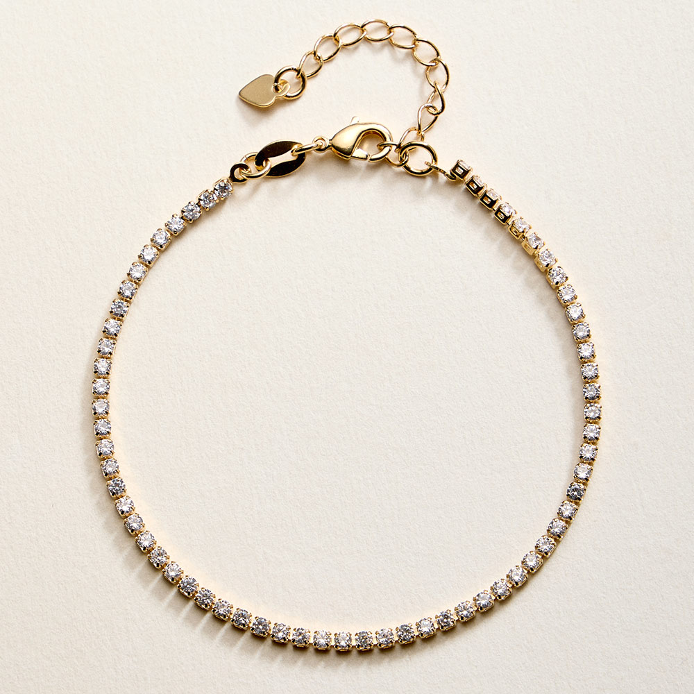 Details • Size : 0.1" H, 7" + 1.75" L • Lobster Clasp Closure • Elegant tennis bracelet designed with a continuous line of shimmering stones for a refined, timeless look. Ideal for everyday wear or special occasions, this versatile bracelet adds polished charm to layered styles or stands beautifully on its own. • CZ Cubic Zirconia • Gold Filled • Hypoallergenic • Lead and Nickel Compliant • Made In Brazil