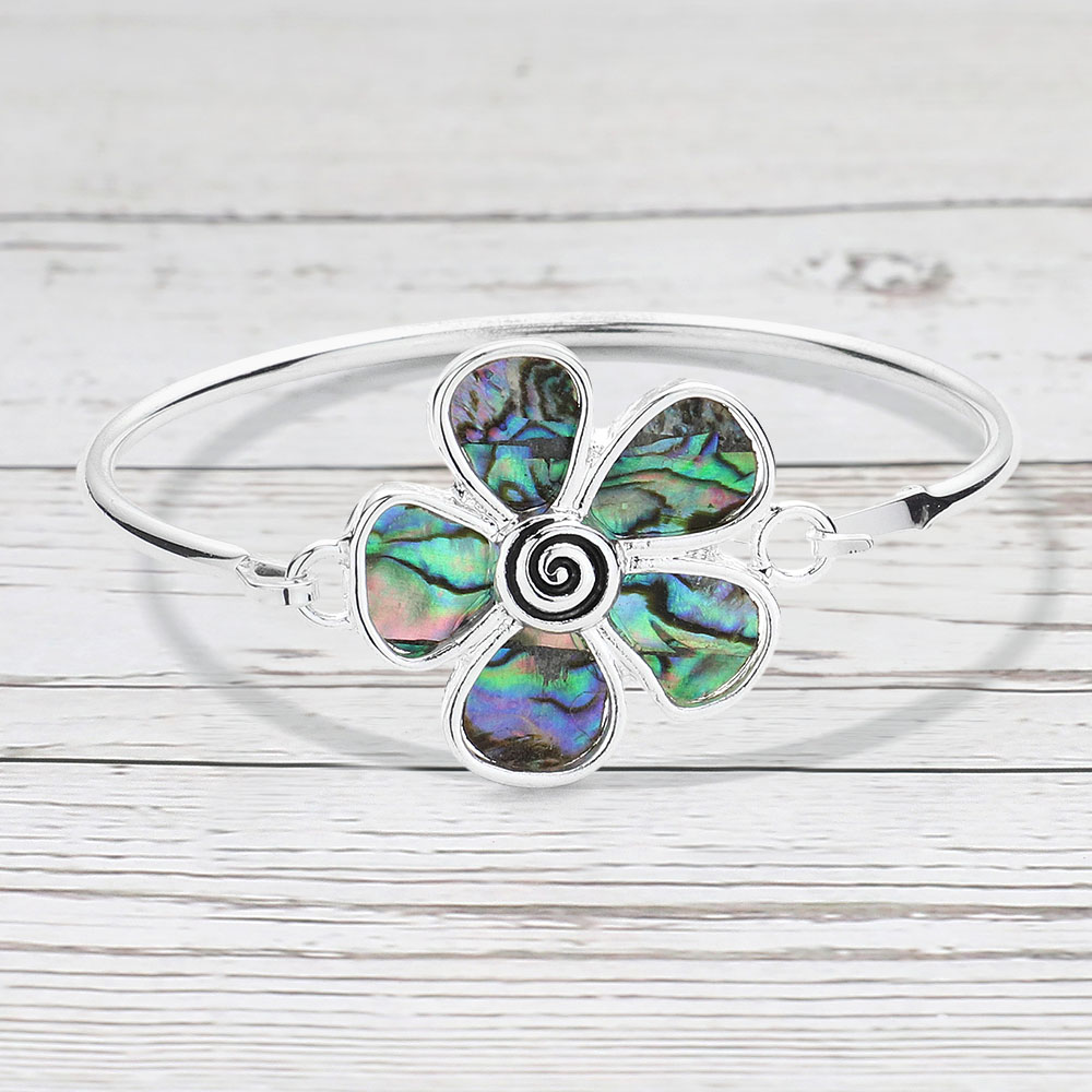 Abalone Flower Spiral Accent Bangle Bracelet Abalone Flower Spiral Accent Bangle Bracelet Abalone Flower Spiral Accent Bangle Bracelet