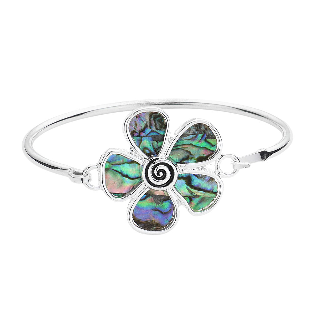 Abalone Flower Spiral Accent Bangle Bracelet